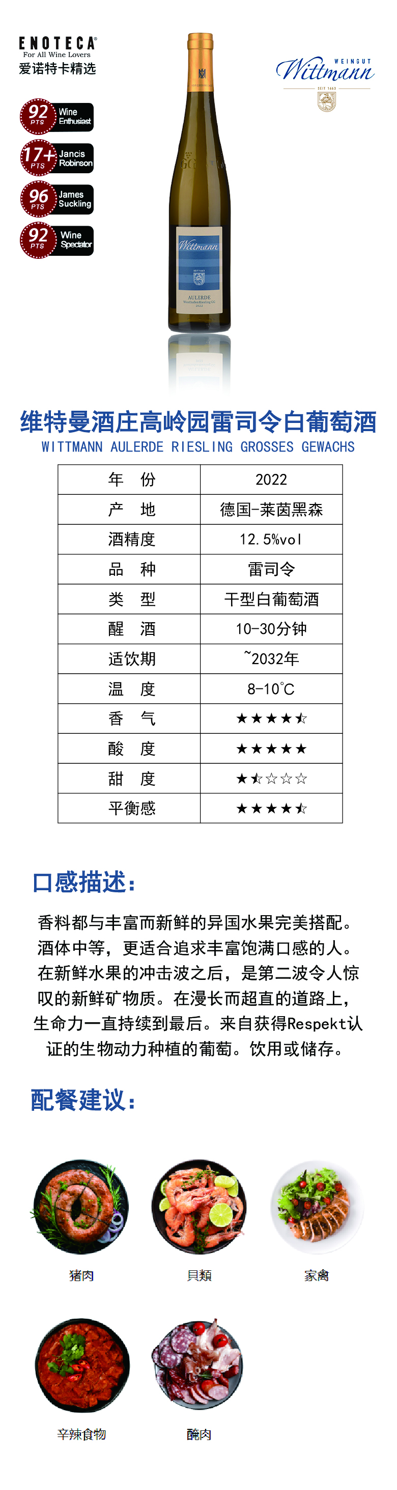 维特曼酒庄高岭园雷司令白葡萄酒 2022 750ml