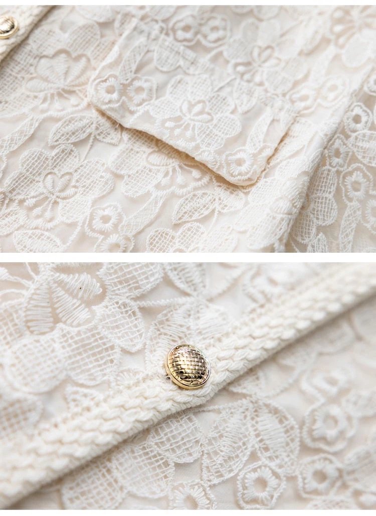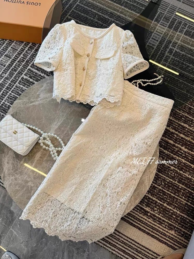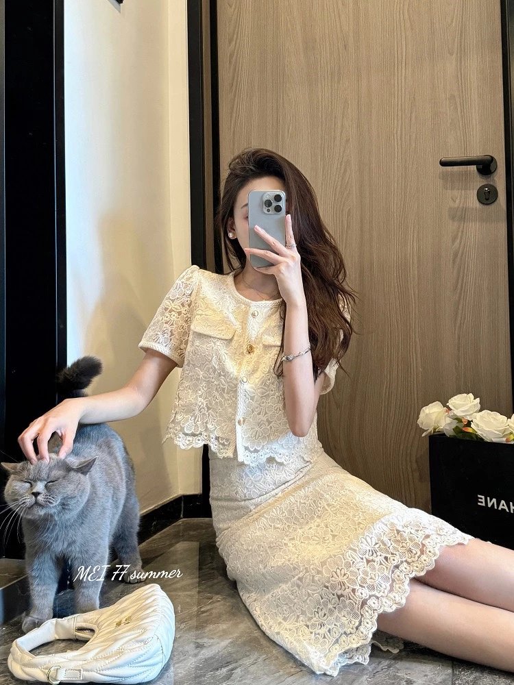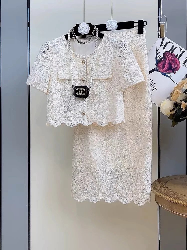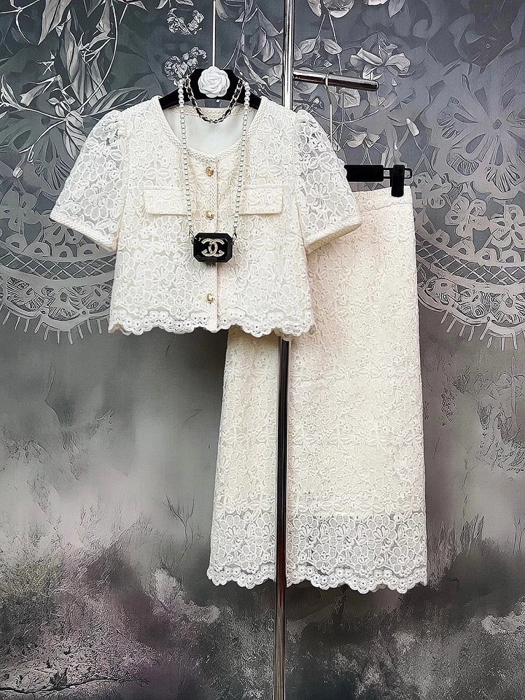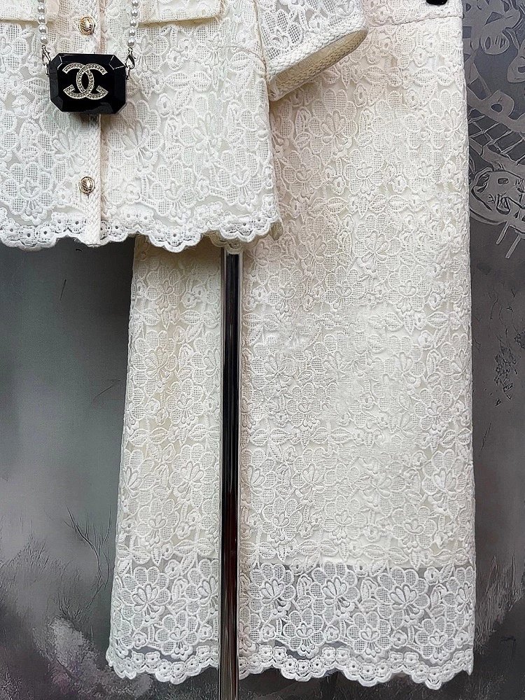 【品名】C家同款意大利进口蕾丝小香风蕾丝套装