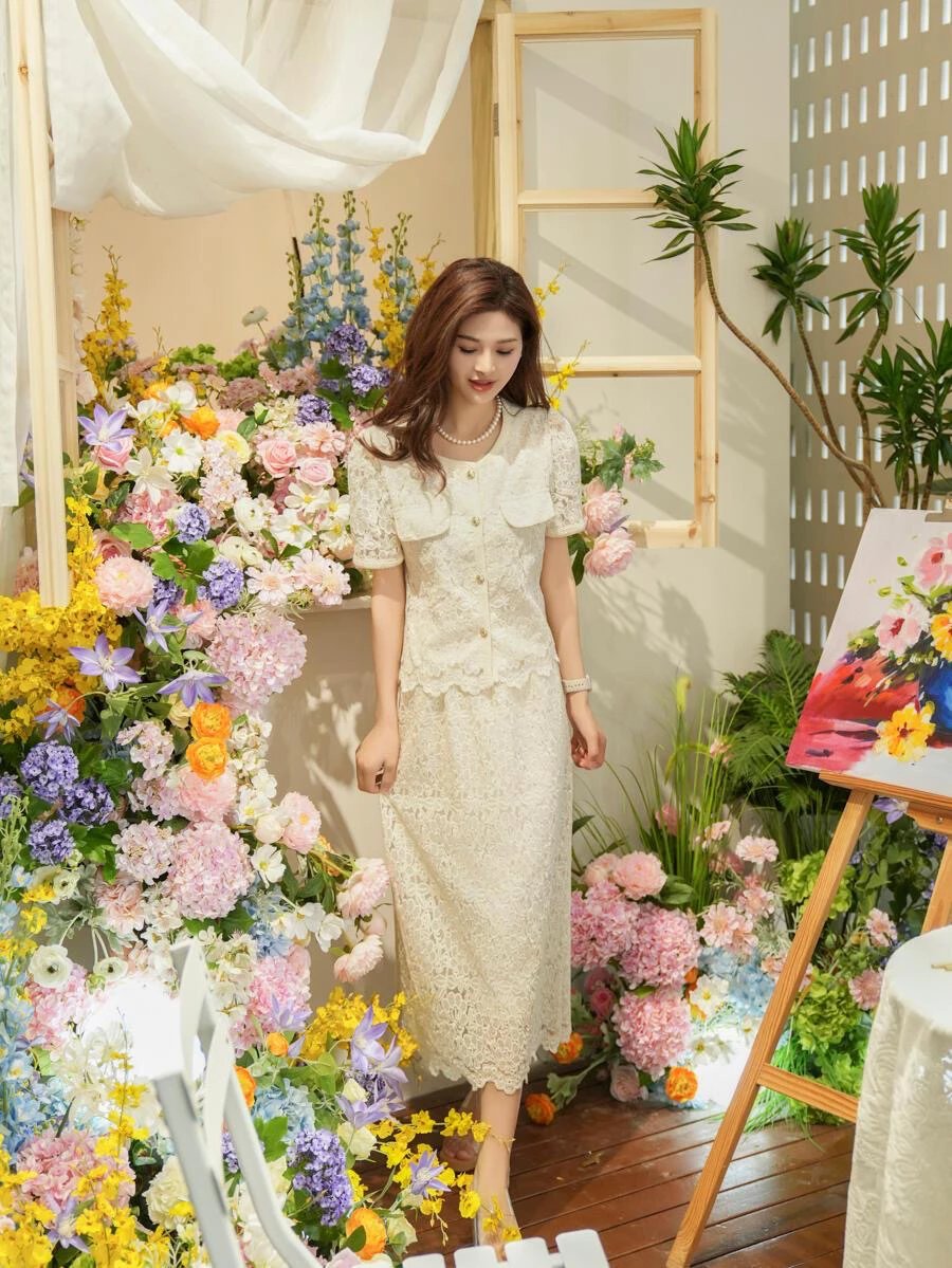 上衣和裙子的下摆呈现花边形状,优雅又不失少女感~