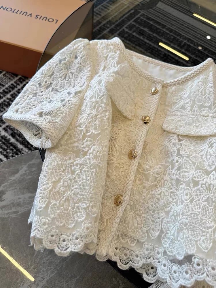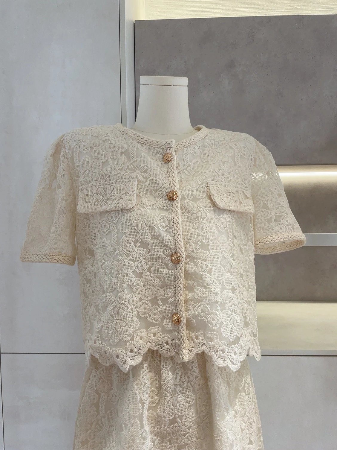 官网价5681~纯手工缝制!【C家同款意大利进口蕾丝小香风蕾丝套装】进口蕾丝面料➕100%棉刺绣工艺~若有若现的透肤感,很有女人味!