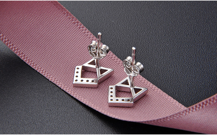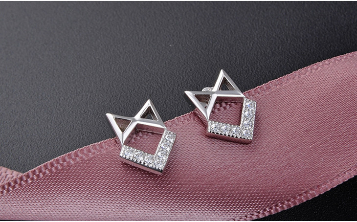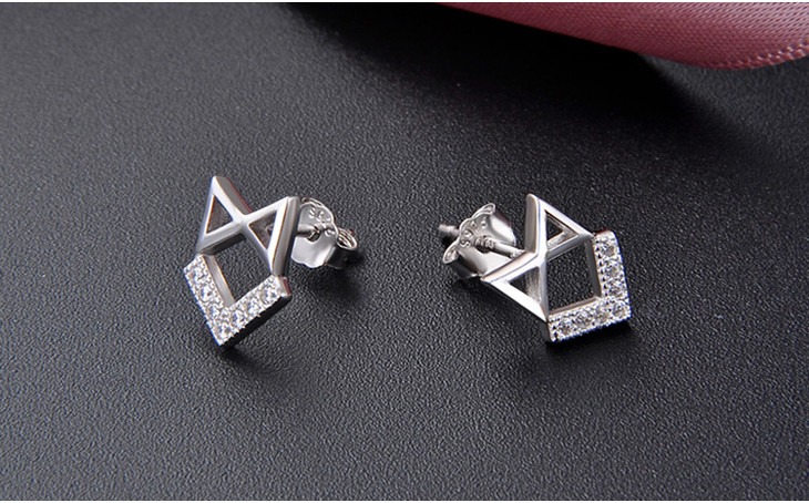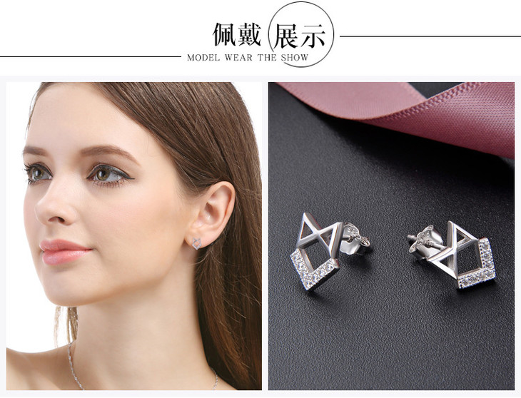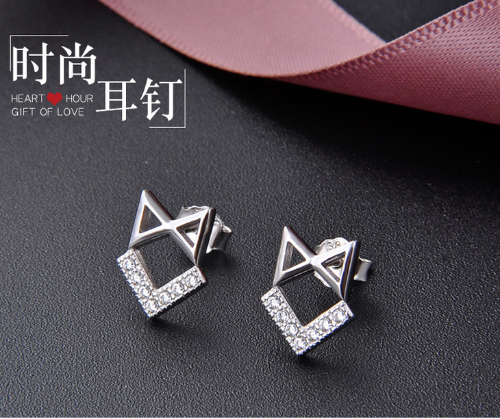 【首饰】s925纯银耳钉女小清新饰品镂空几何镶锆石耳饰
