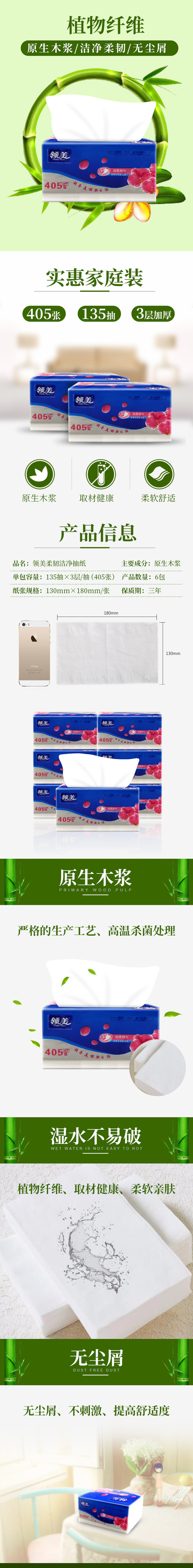 。【卫生纸】抽取式面巾纸6连包405张135抽原生木浆屑家居客餐厅卫生手纸