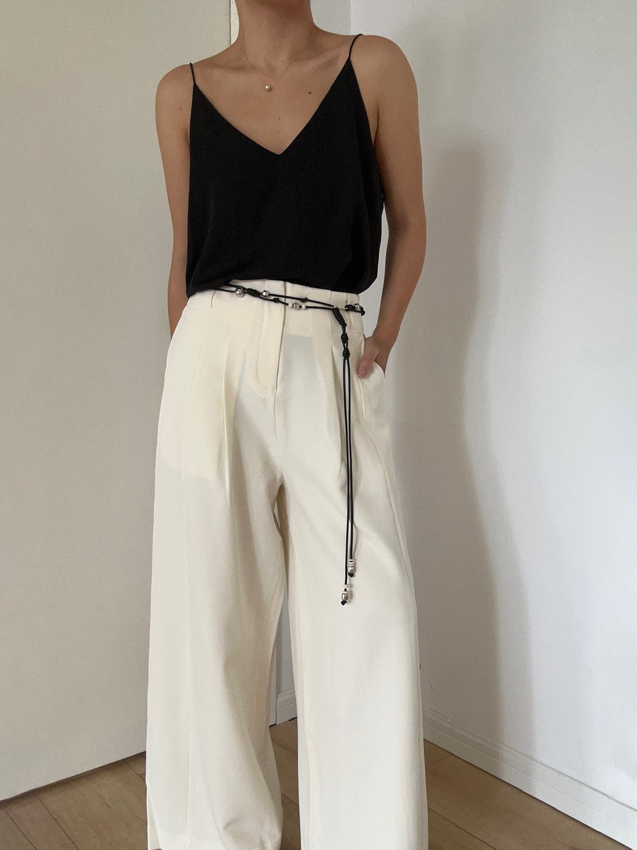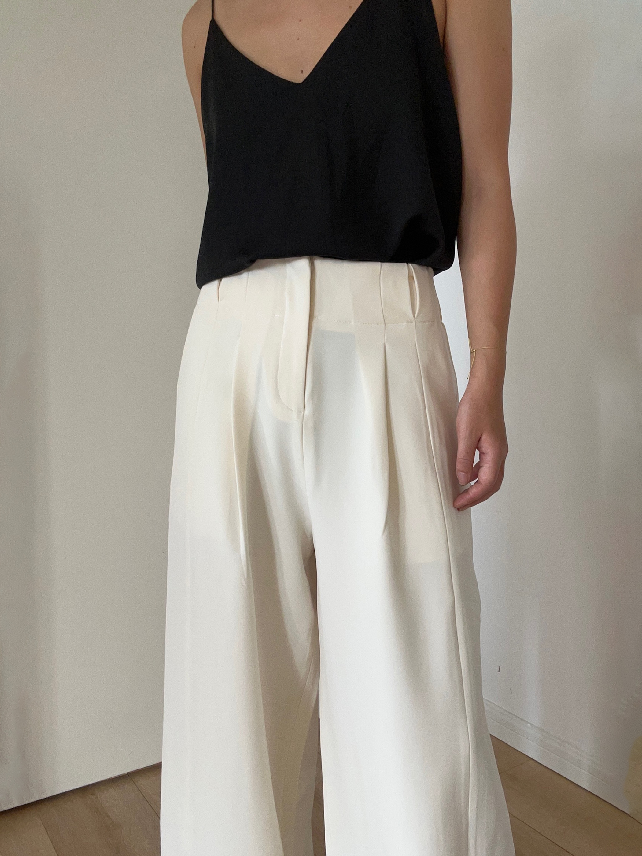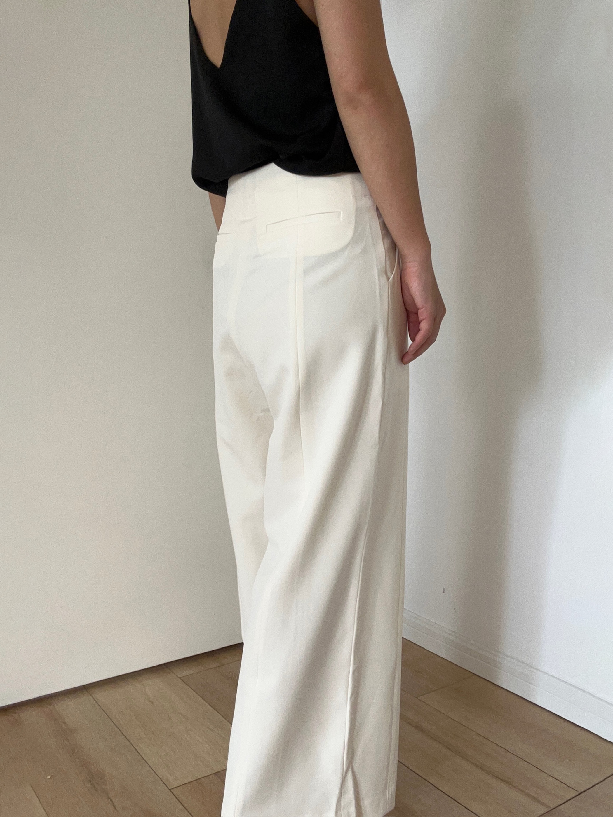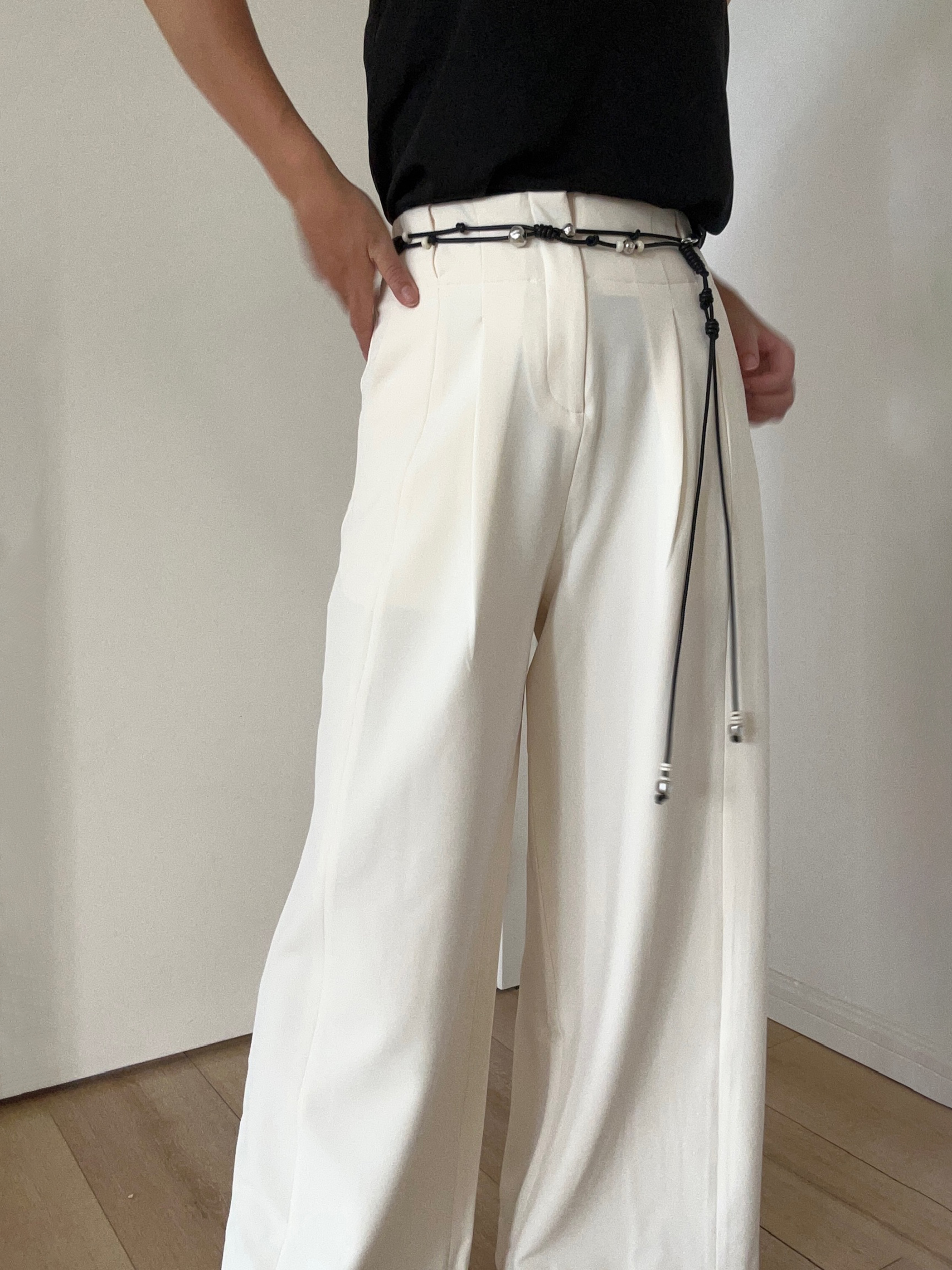 DONSEE10|白色无腰头阔腿裤 DS10SS2484