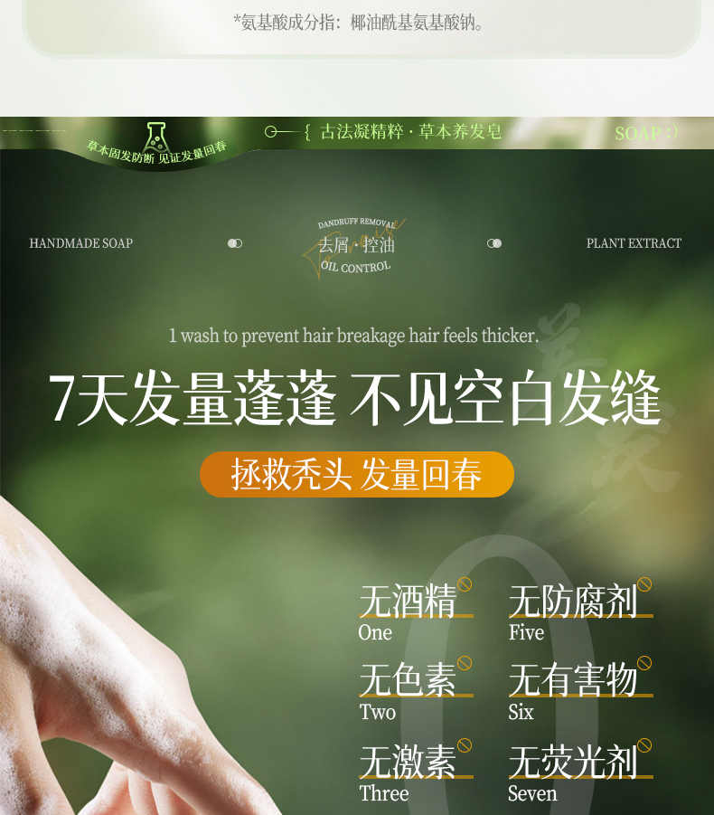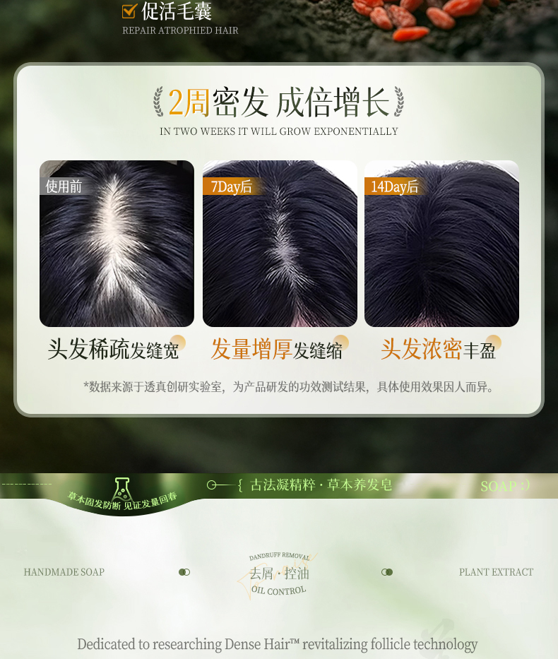 【止脱 发量暴涨】侧柏叶洗发皂洗头何首乌纯天然中药草本手工养固发防断发控油去屑