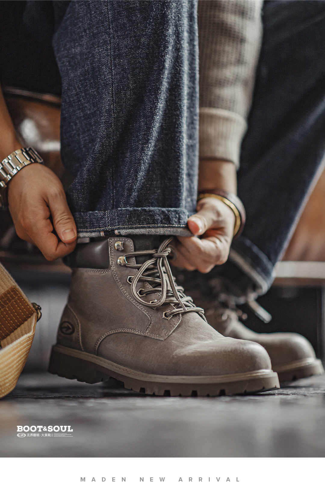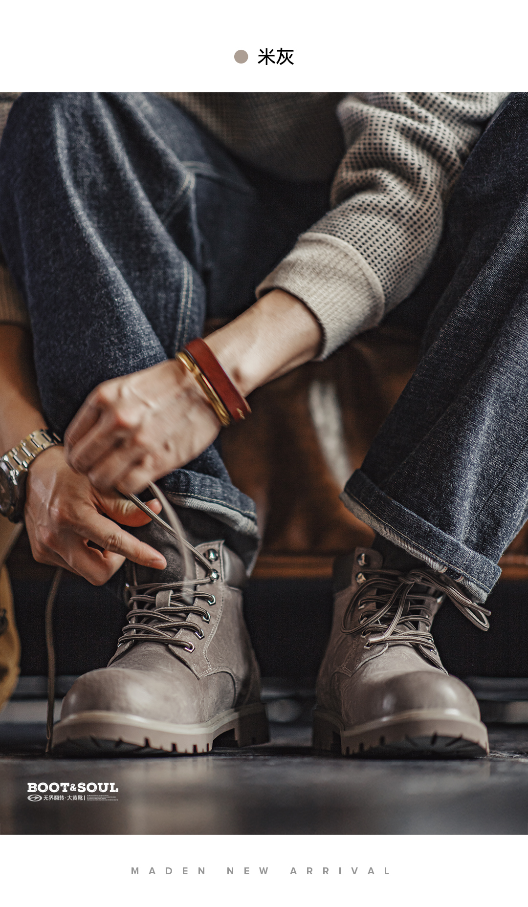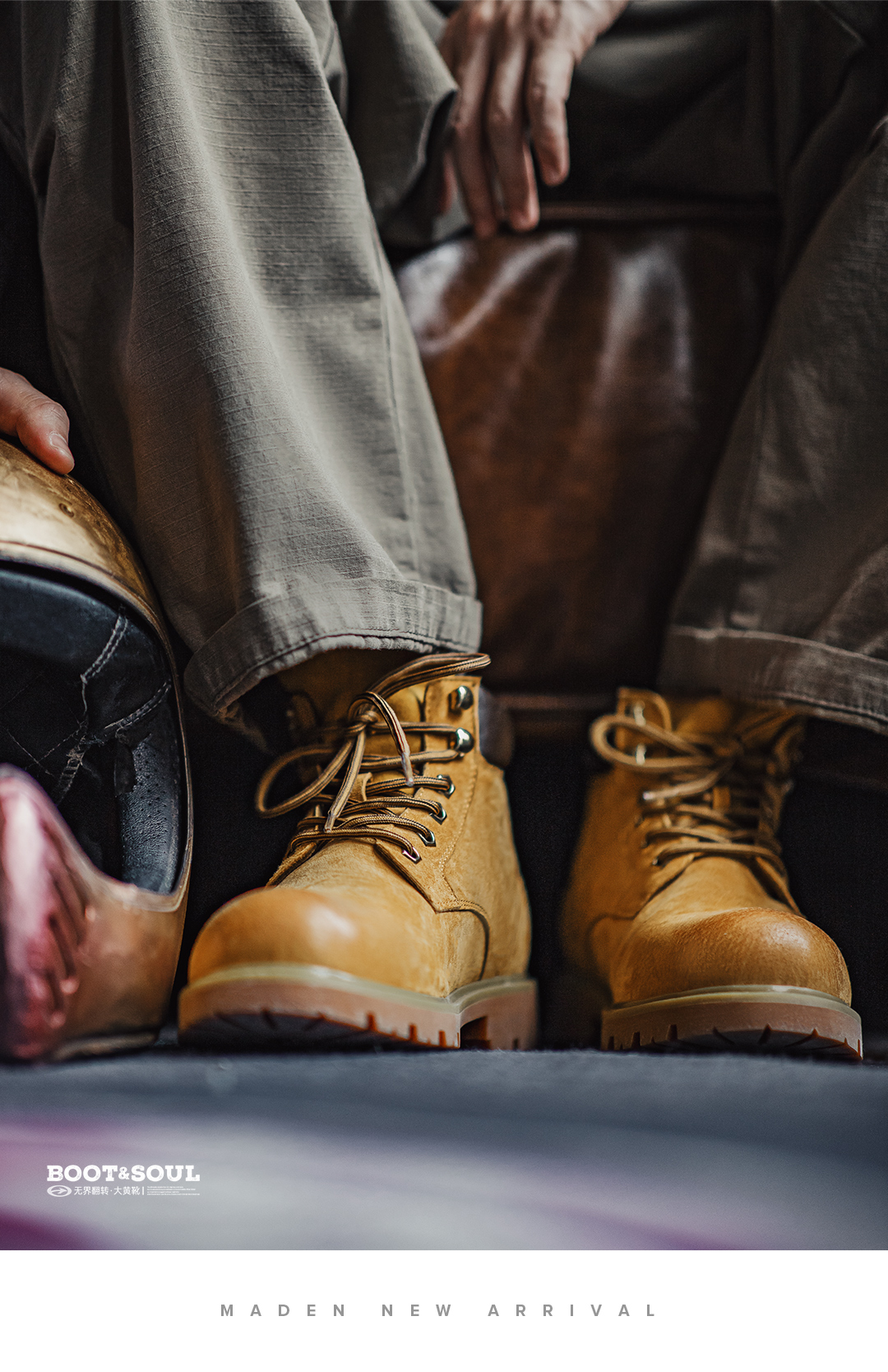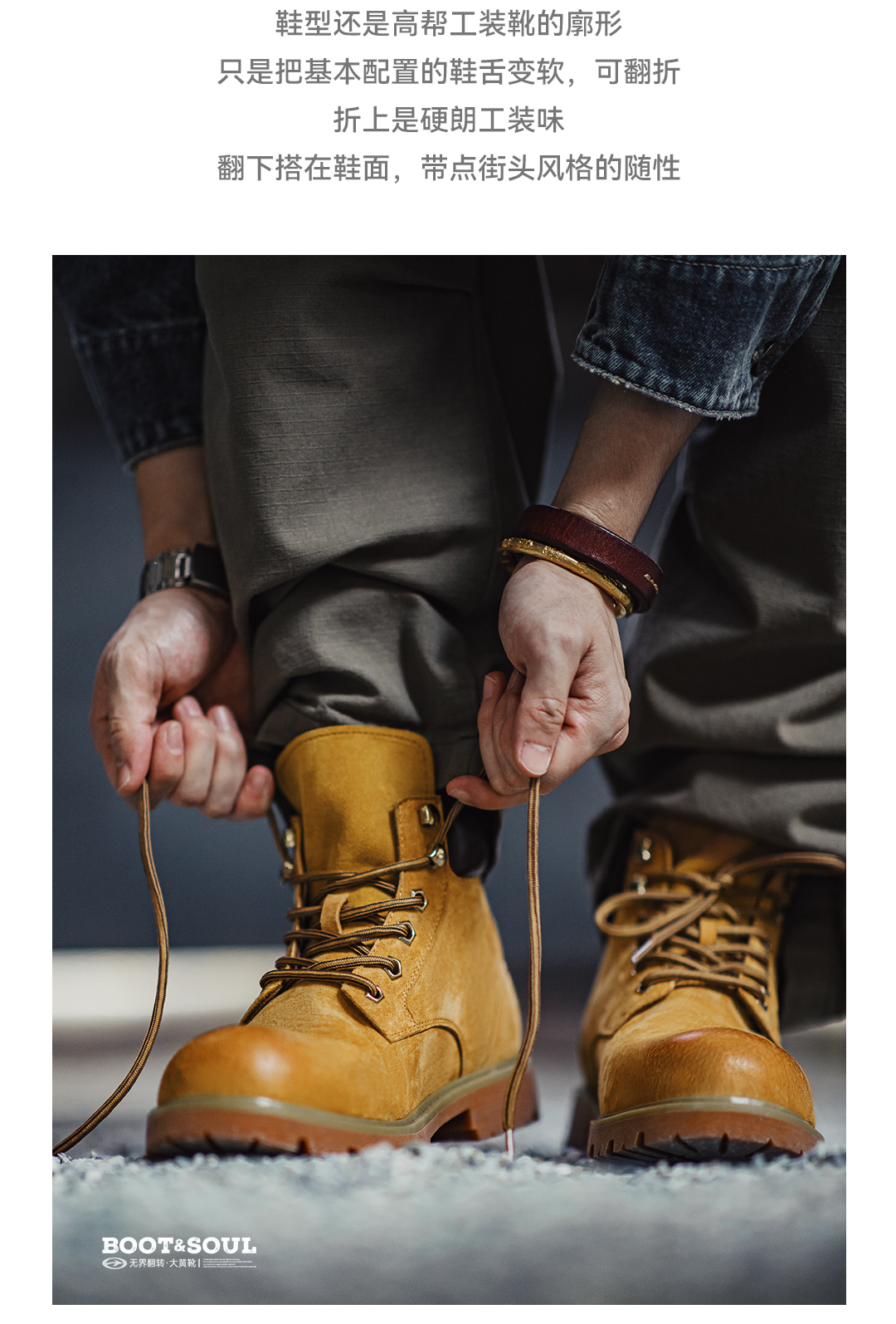 马登无界翻转大黄靴男秋冬新款翻盖中帮真皮复古美式工装马丁靴子