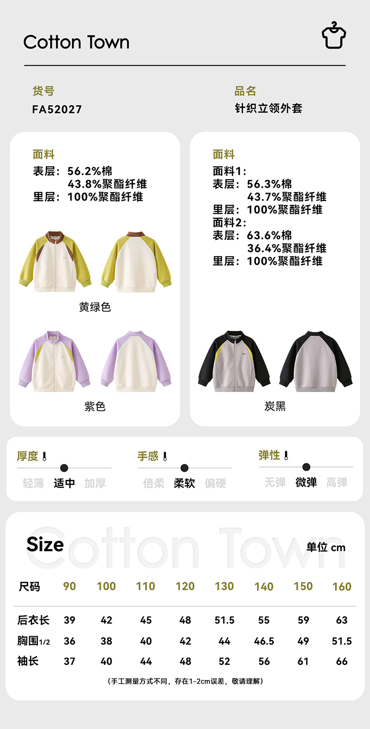【撞色立领外套】棉花堂 针织立领外套 7A级抗菌 柔软有型 FA52027