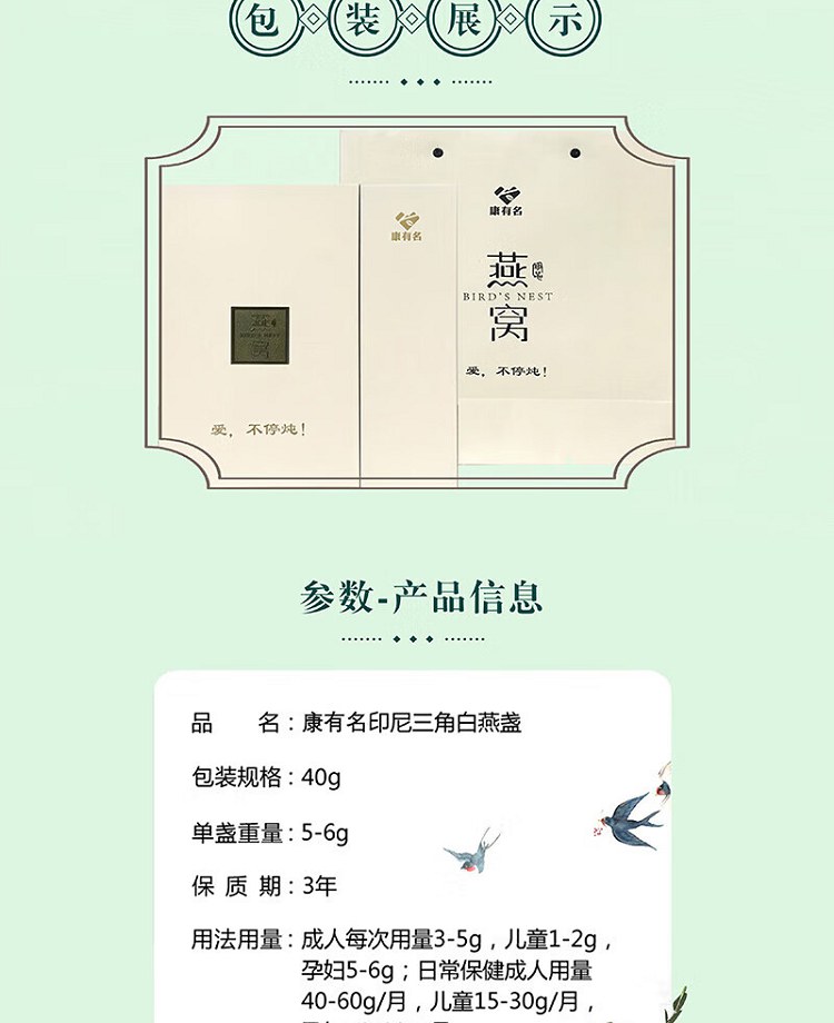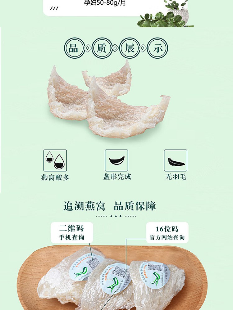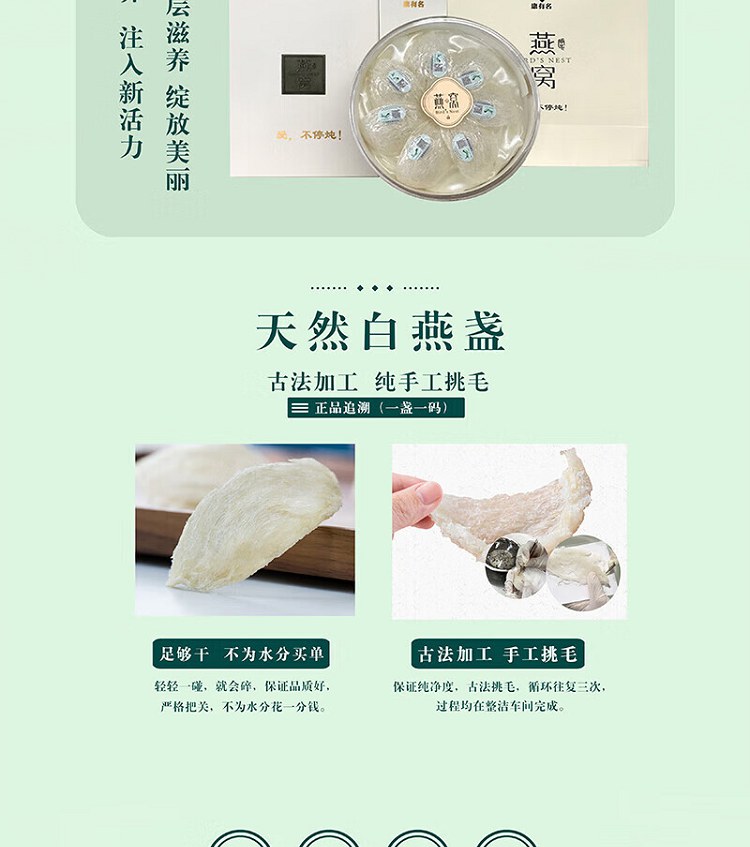 【原 料】 白燕窝(燕盏)原产国:印度尼西亚