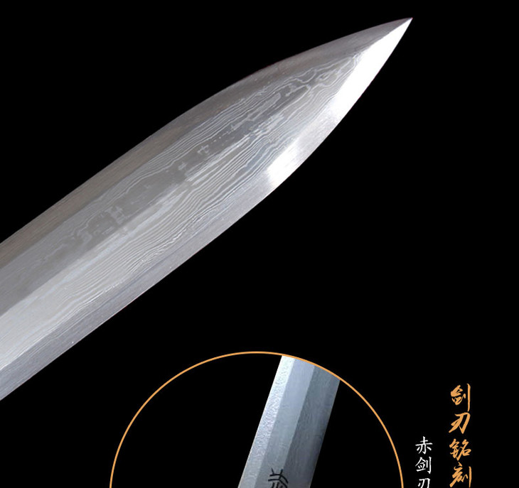 中华古汉剑 裱布漆鞘 百炼花纹钢 未开刃