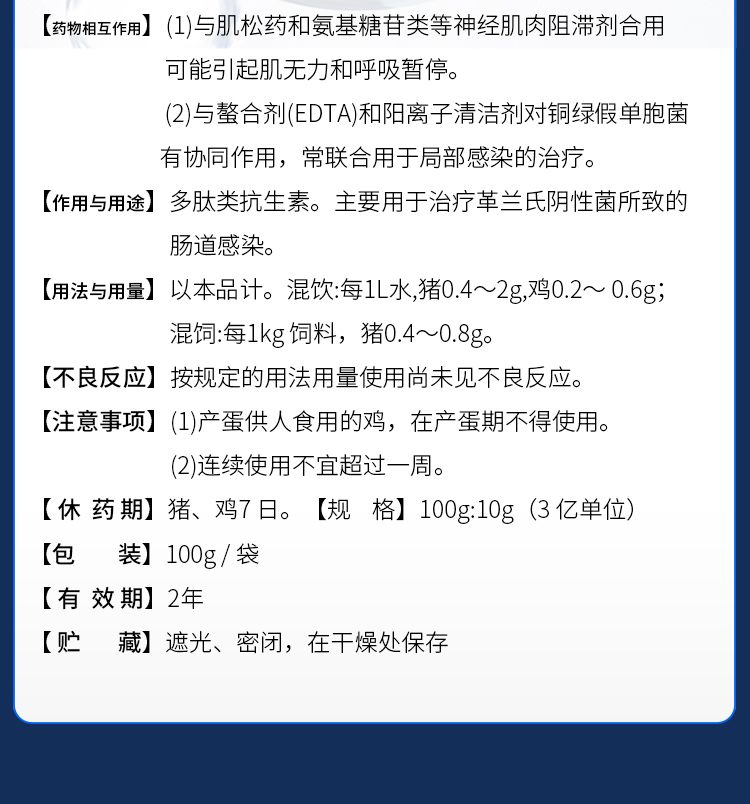 【社群专享】华畜兽药10%硫酸黏菌素可溶性粉 肠炎顽固性腹泻黄白痢,搭配白头翁疗效更好