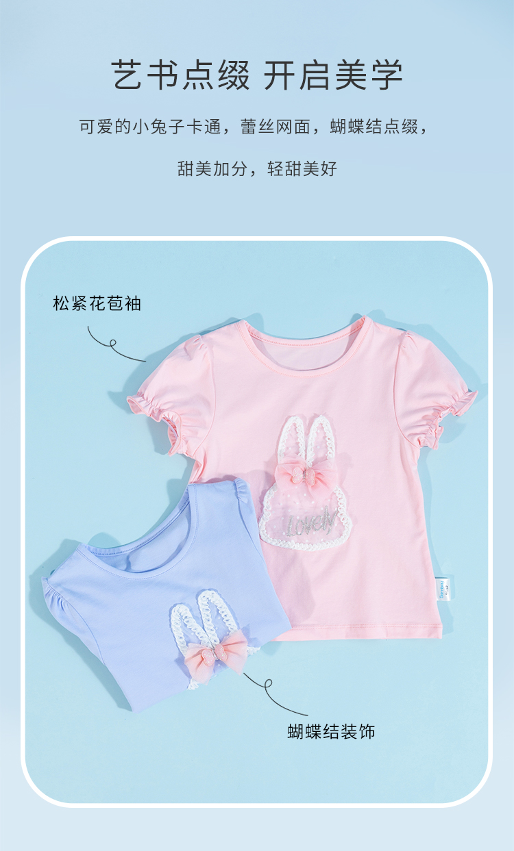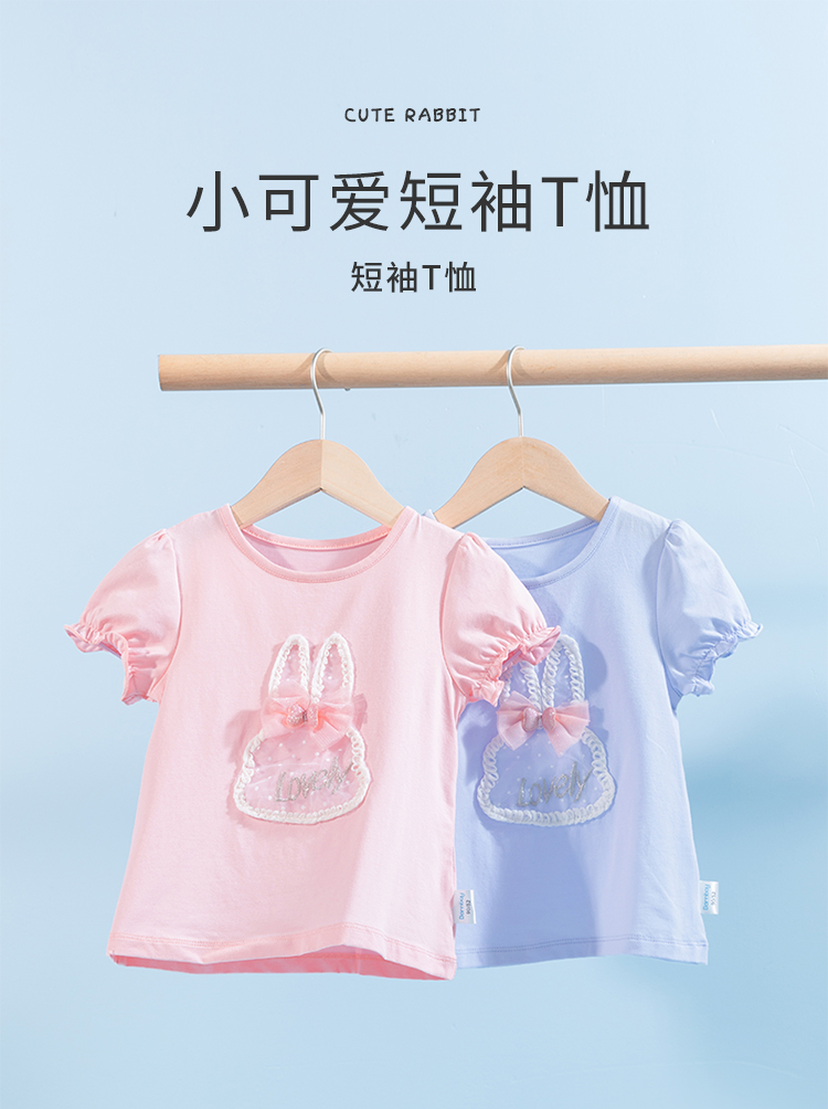 贝贝怡女童短袖t恤夏季儿童上衣圆领新款女孩夏装洋气可爱潮