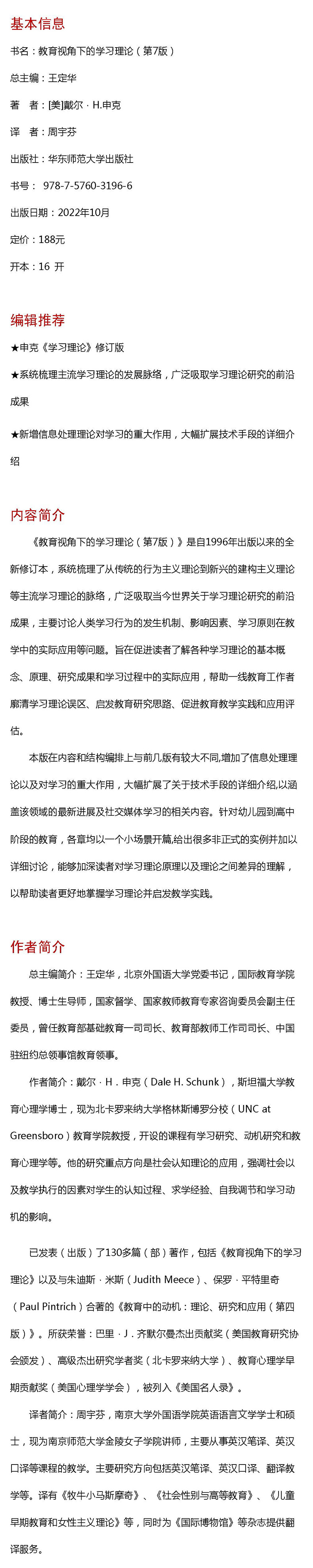 教育视角下的学习理论 第7版 教育治理与领导力丛书