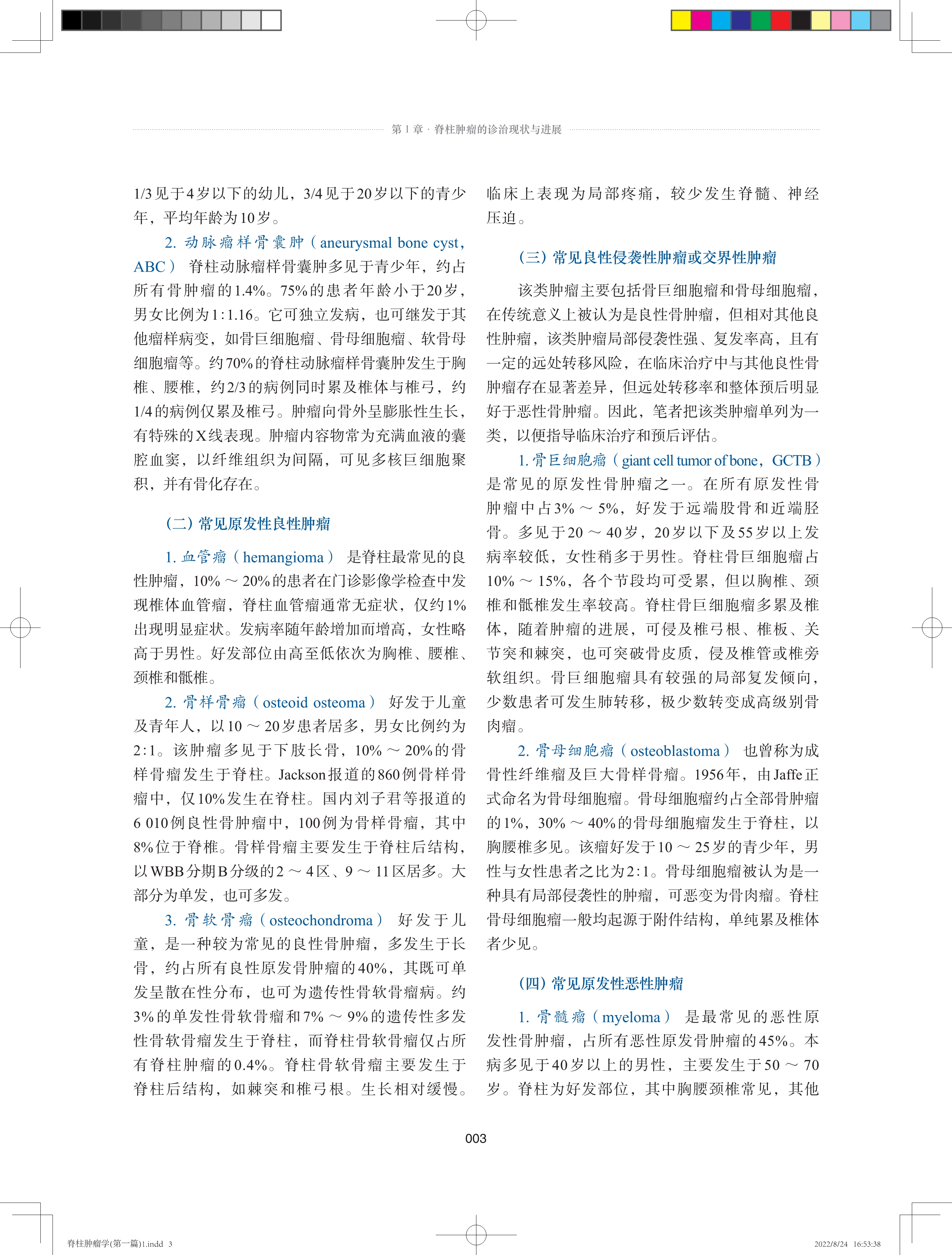 第 1 章 脊柱肿瘤的诊治现状与进展 002