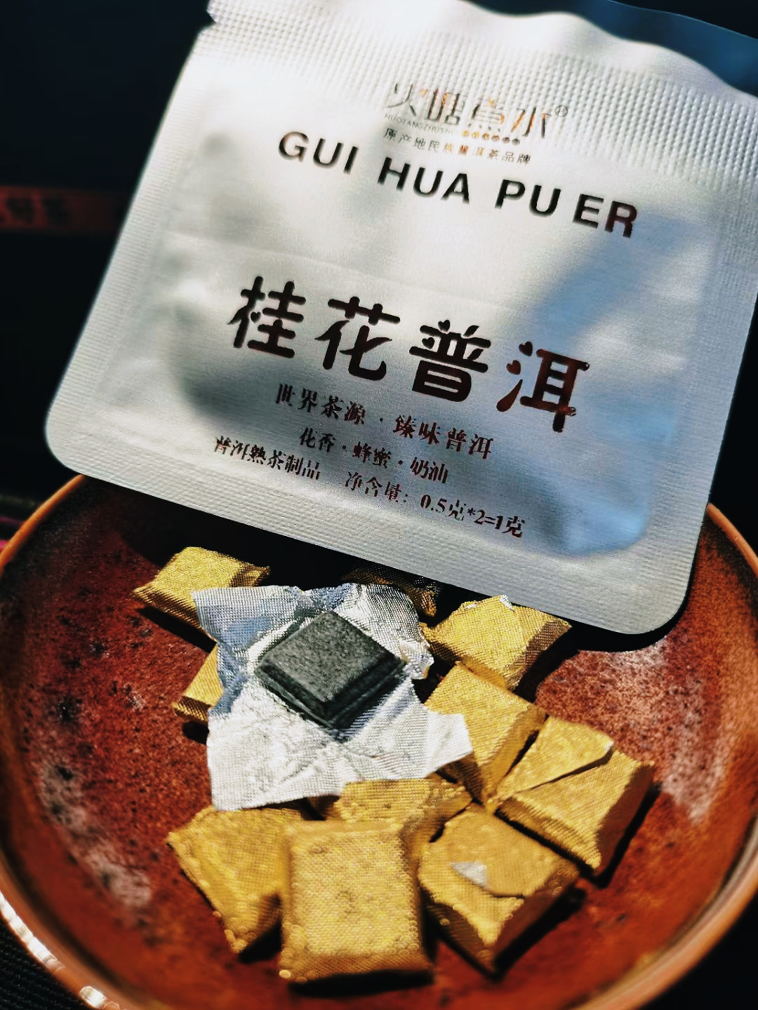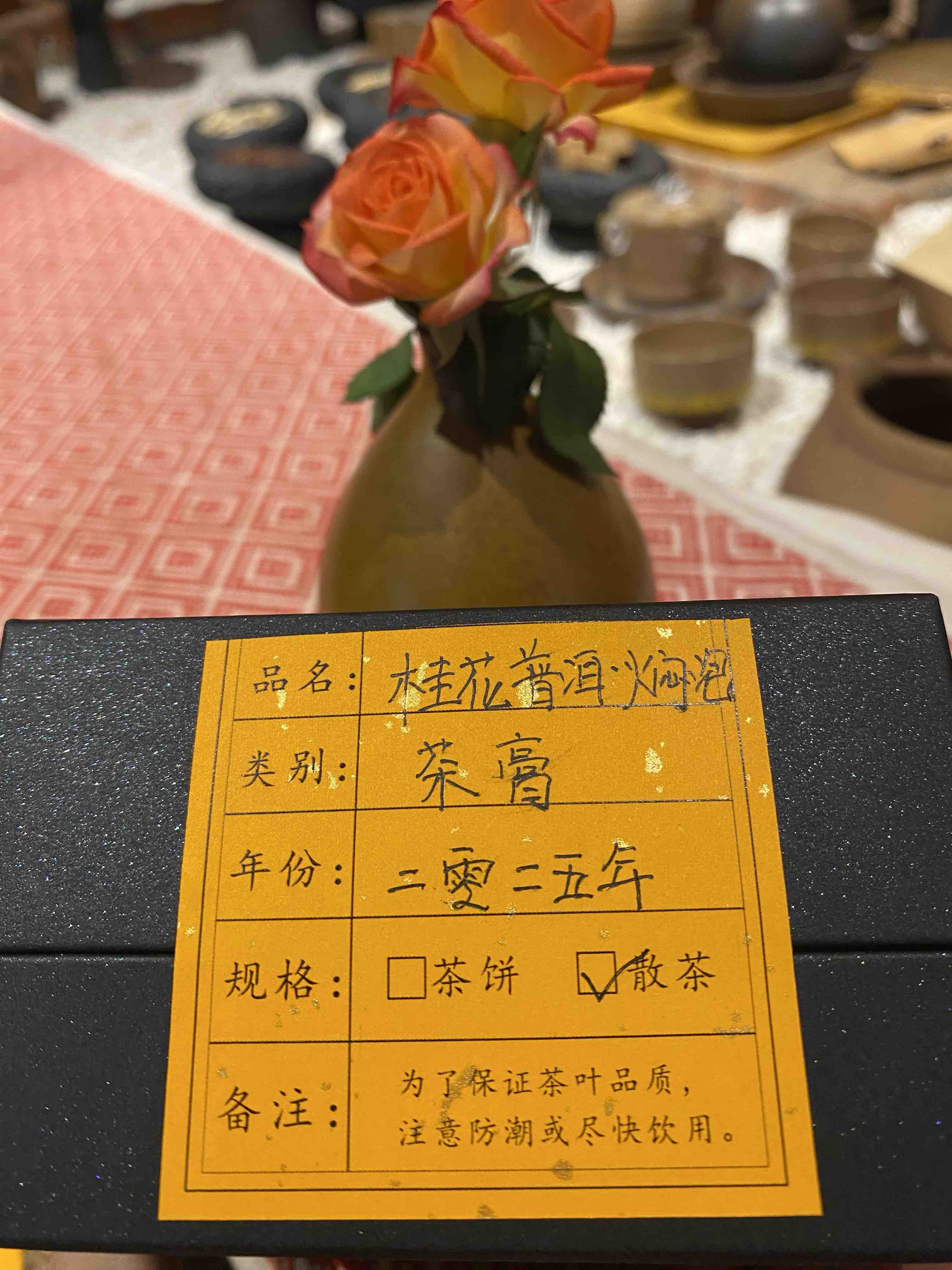 年份:老熟茶(2000年)、桂花普洱(2025年)