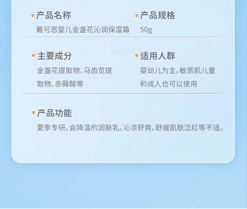 戴可思冰沙面霜儿童保湿补水冰淇淋金盏夏季宝宝晒后修复专用