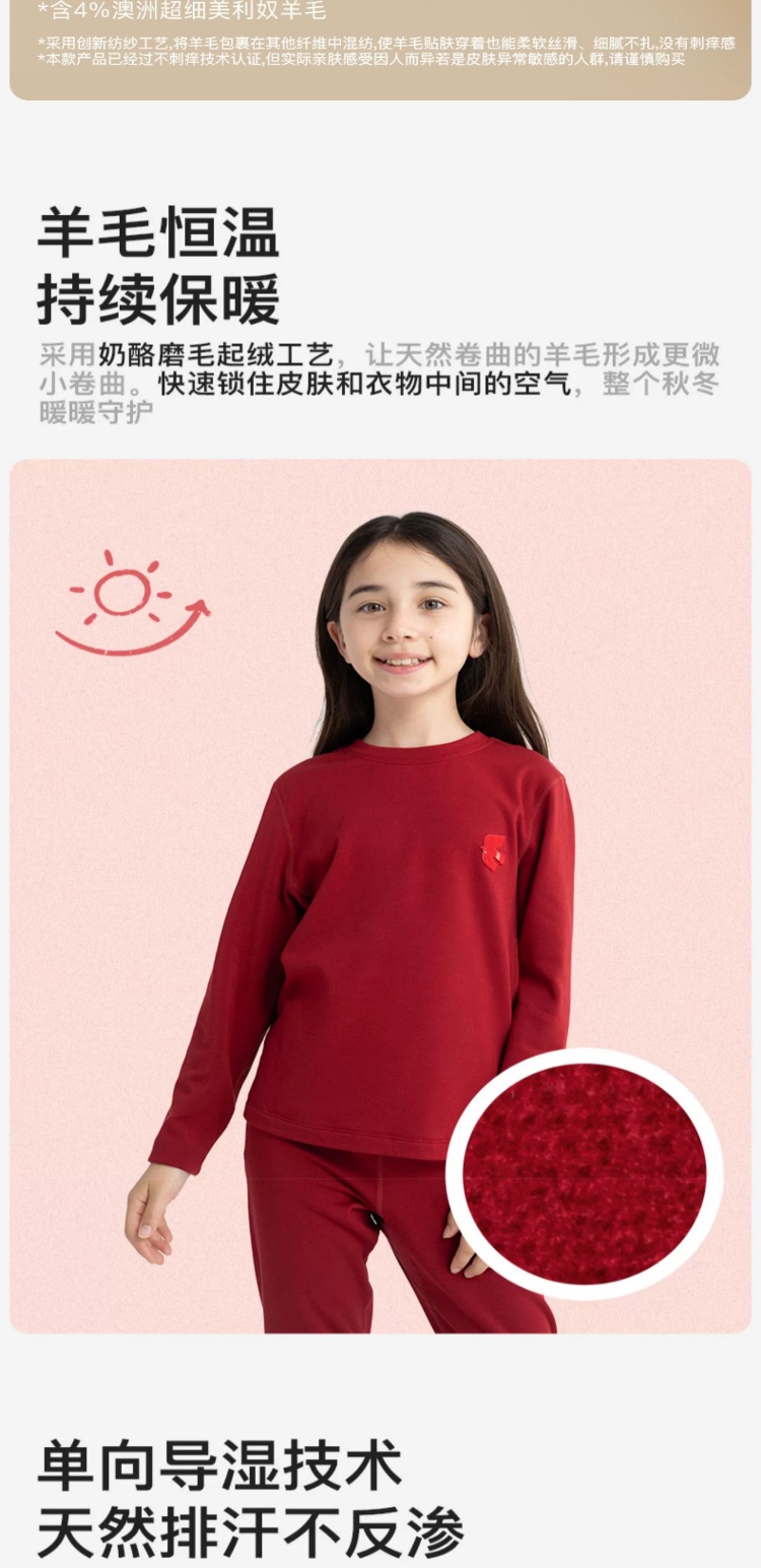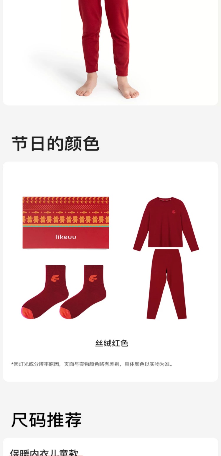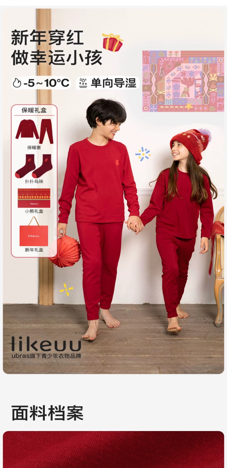 likeuu亲子款圆领羊毛保暖套装本命年红色秋衣裤新年礼盒LGL242011