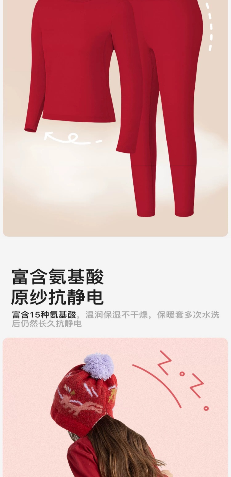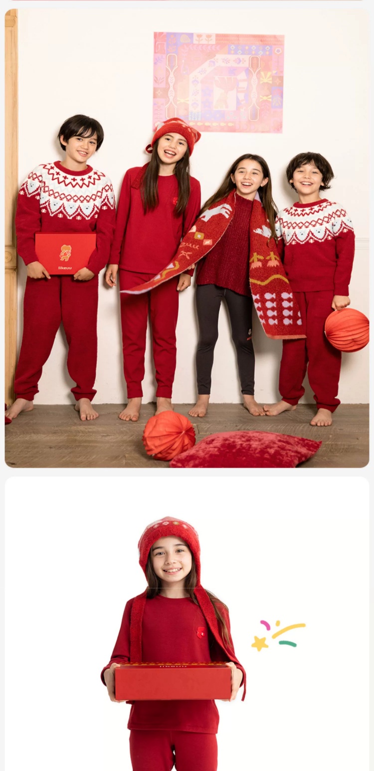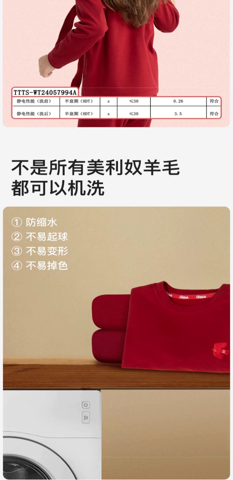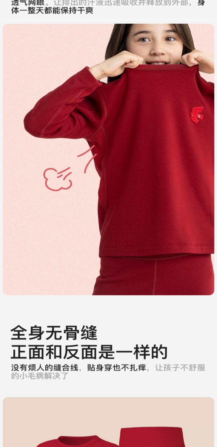 likeuu亲子款圆领羊毛保暖套装本命年红色秋衣裤新年礼盒LGL242011