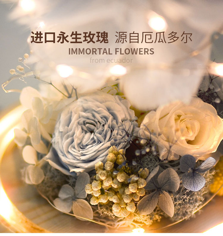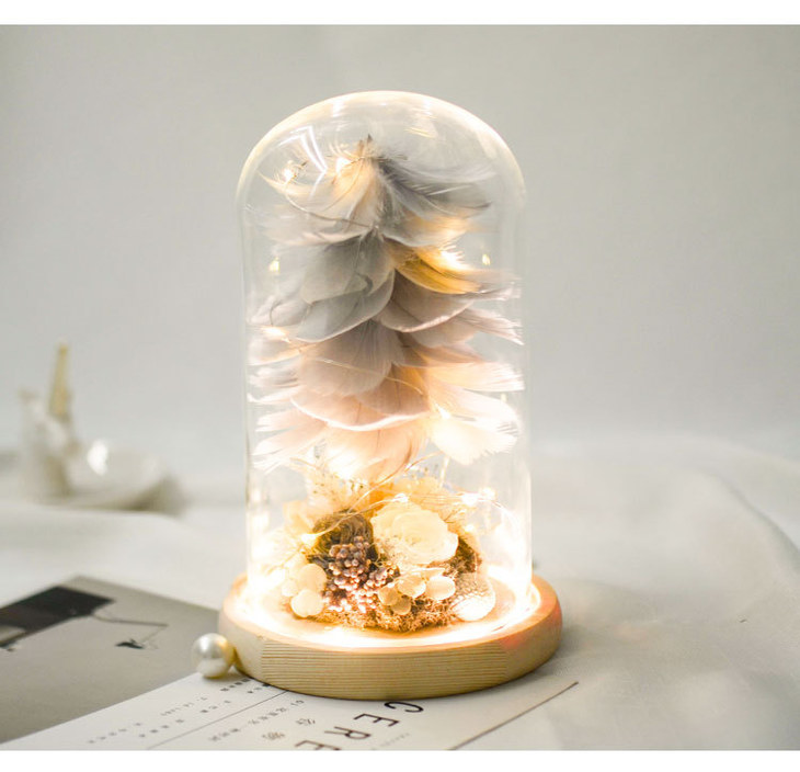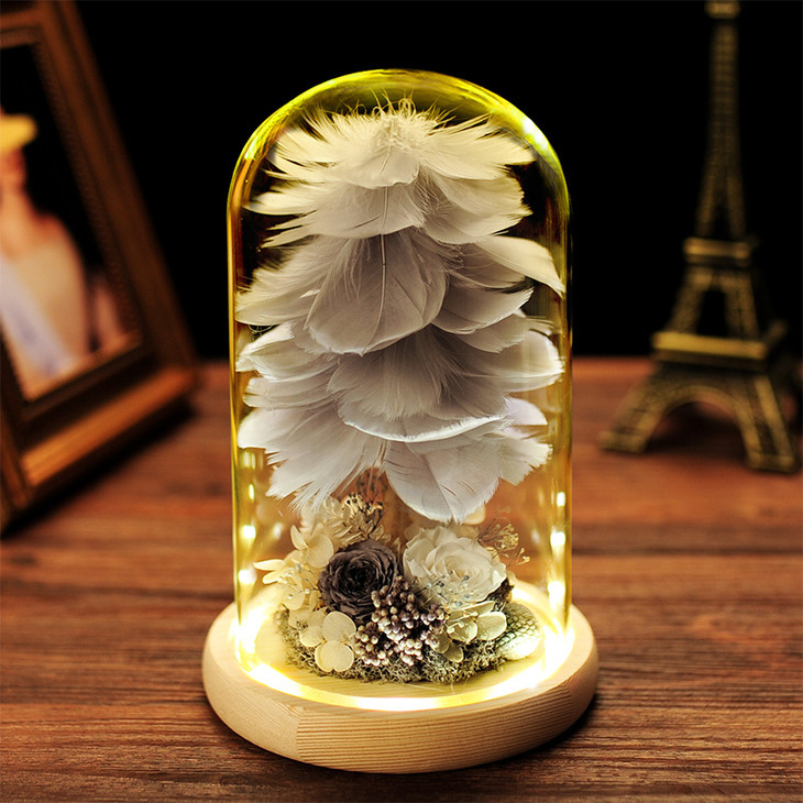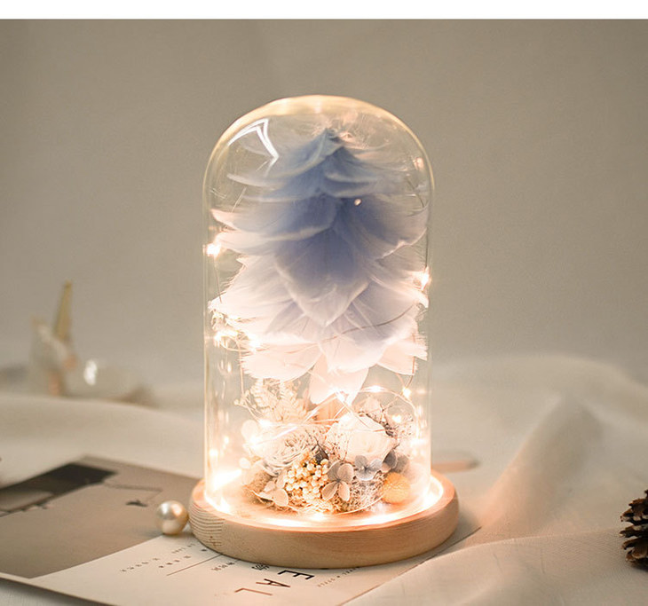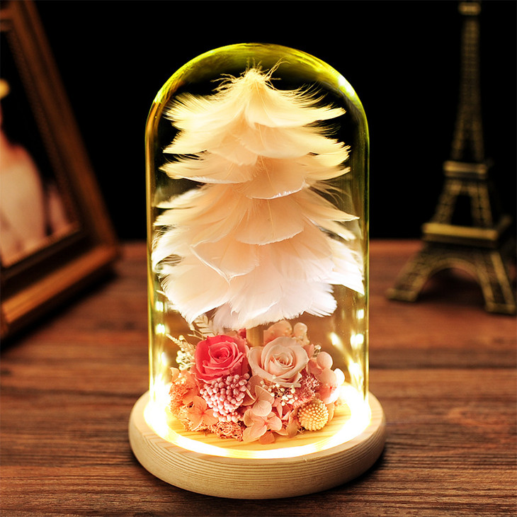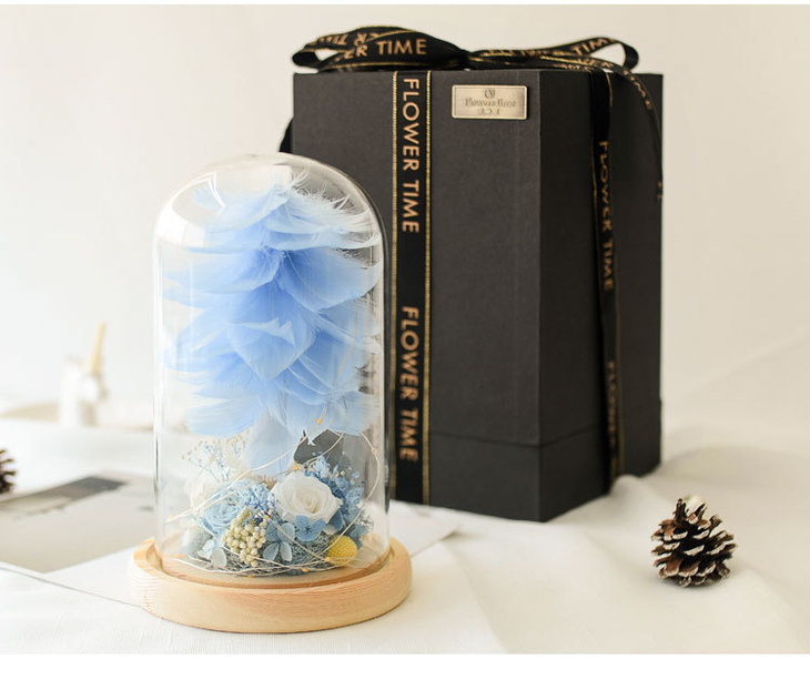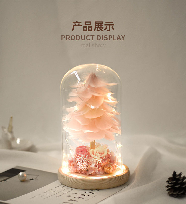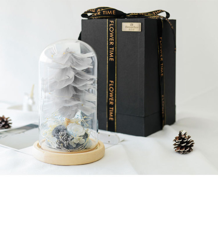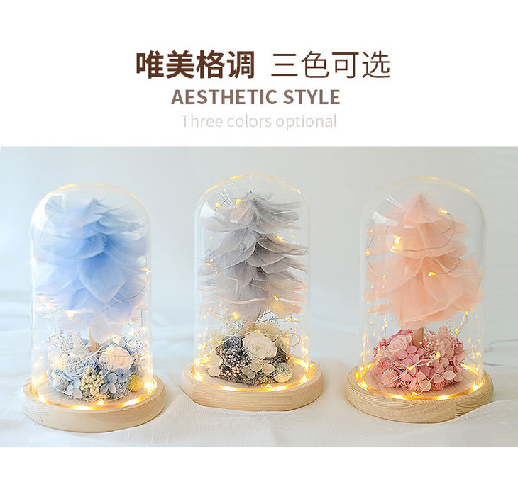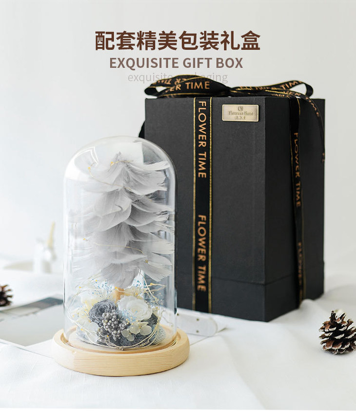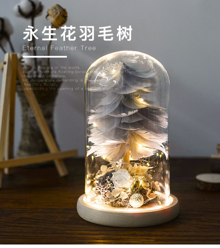 【礼物】创意新款羽毛树永生花玻璃罩礼盒干花花束装饰摆件情人节生日礼物