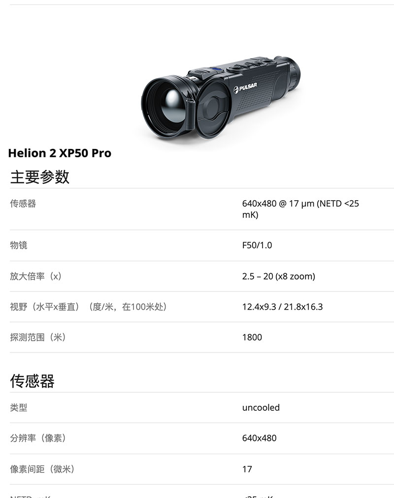 【2022】PULSAR 脉冲星XP50 PRO二代单目手持高清红外夜视热成像仪
