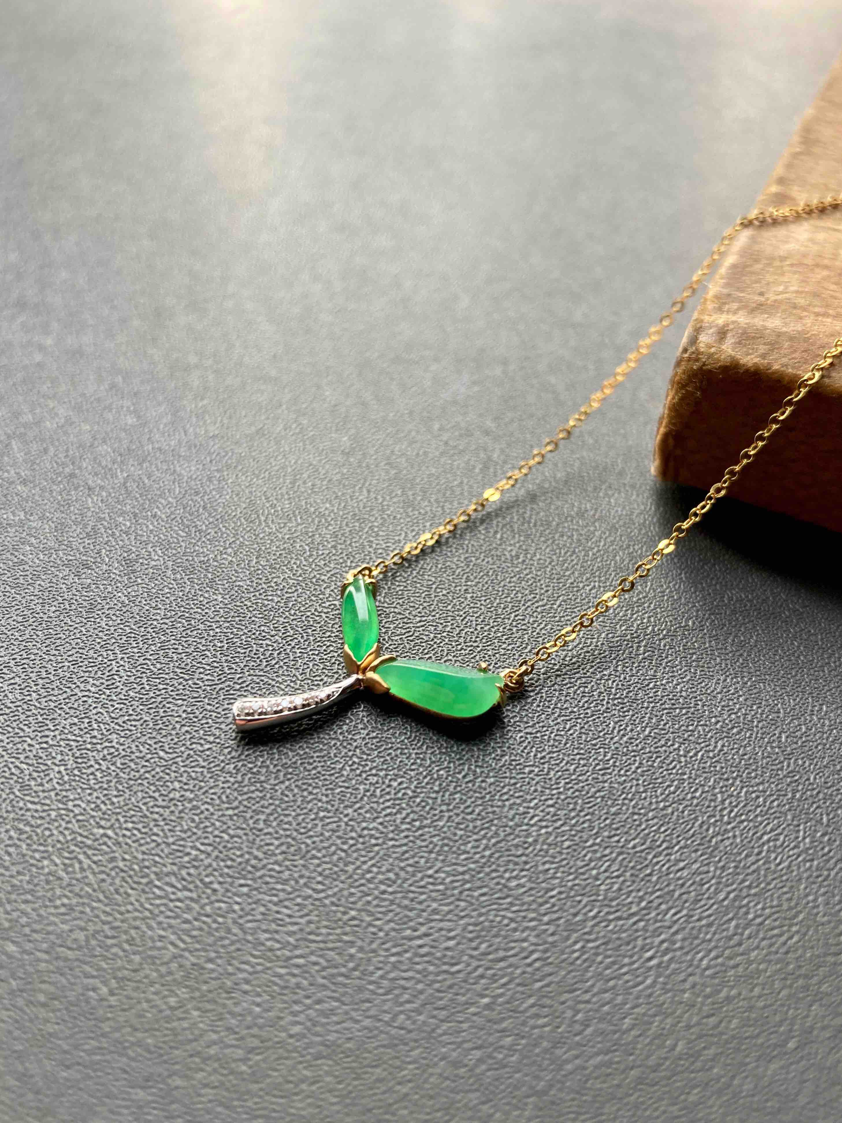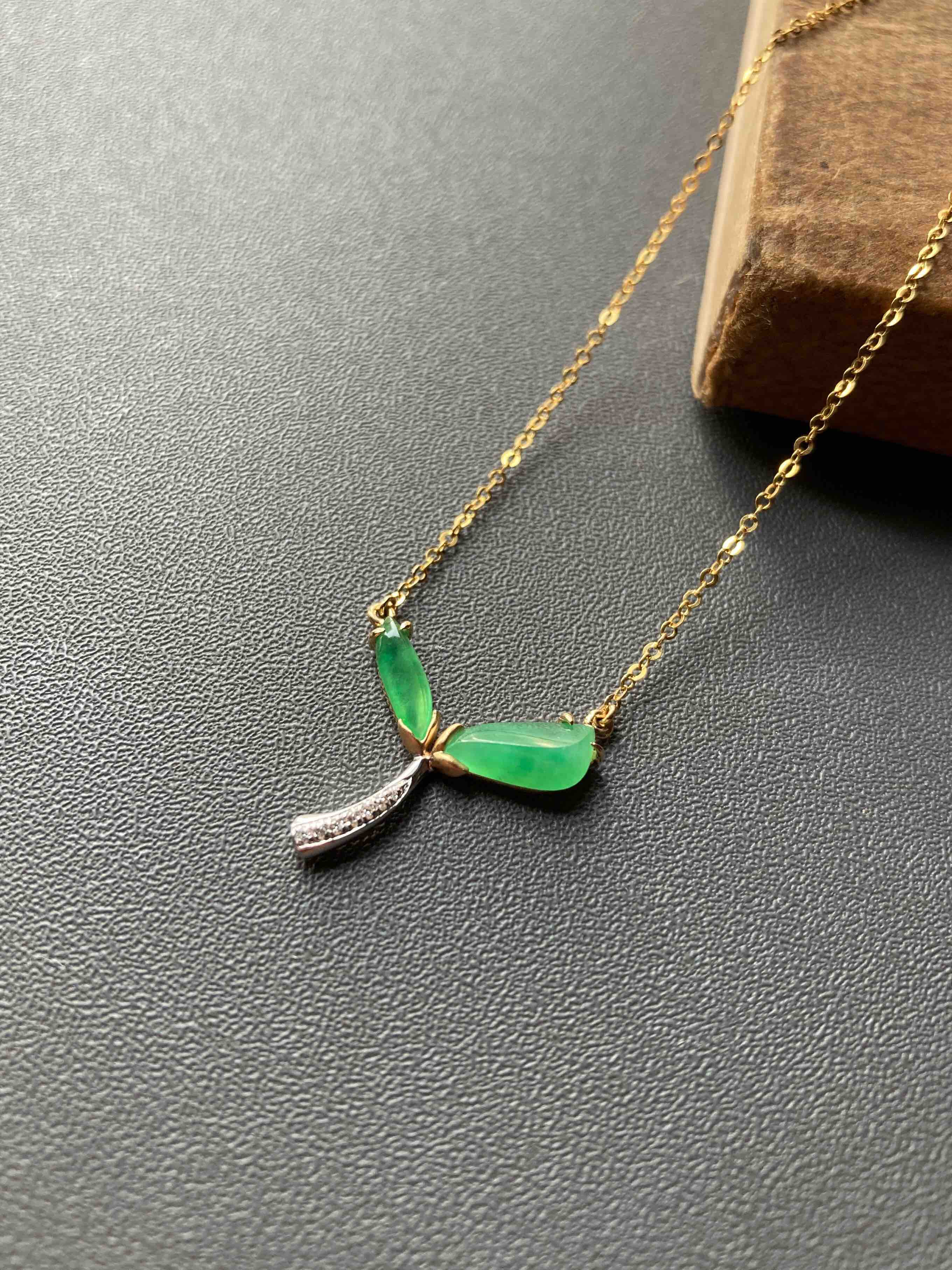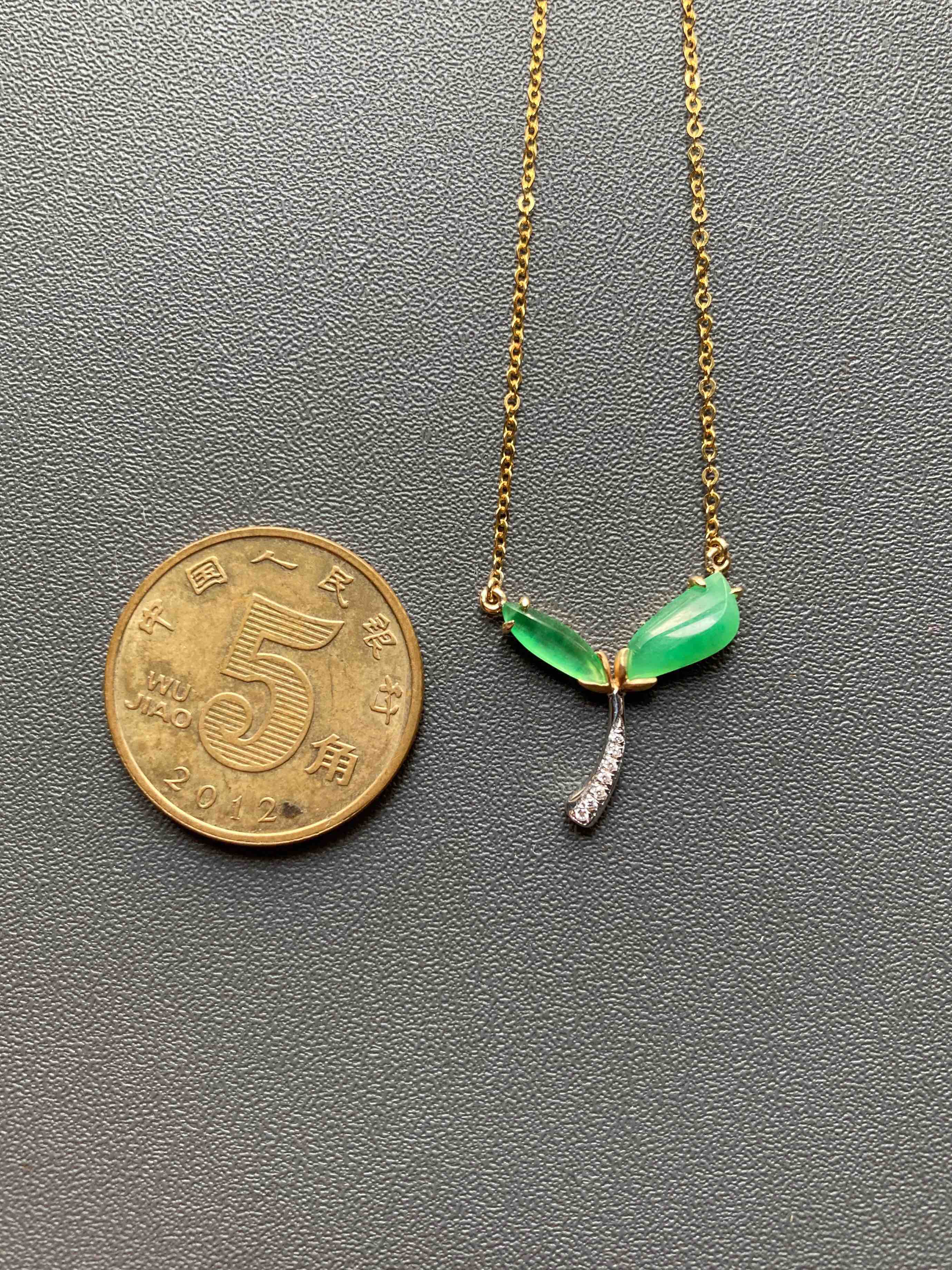 高冰种阳绿翡翠萌芽锁骨链18k黄金白金钻石镶嵌