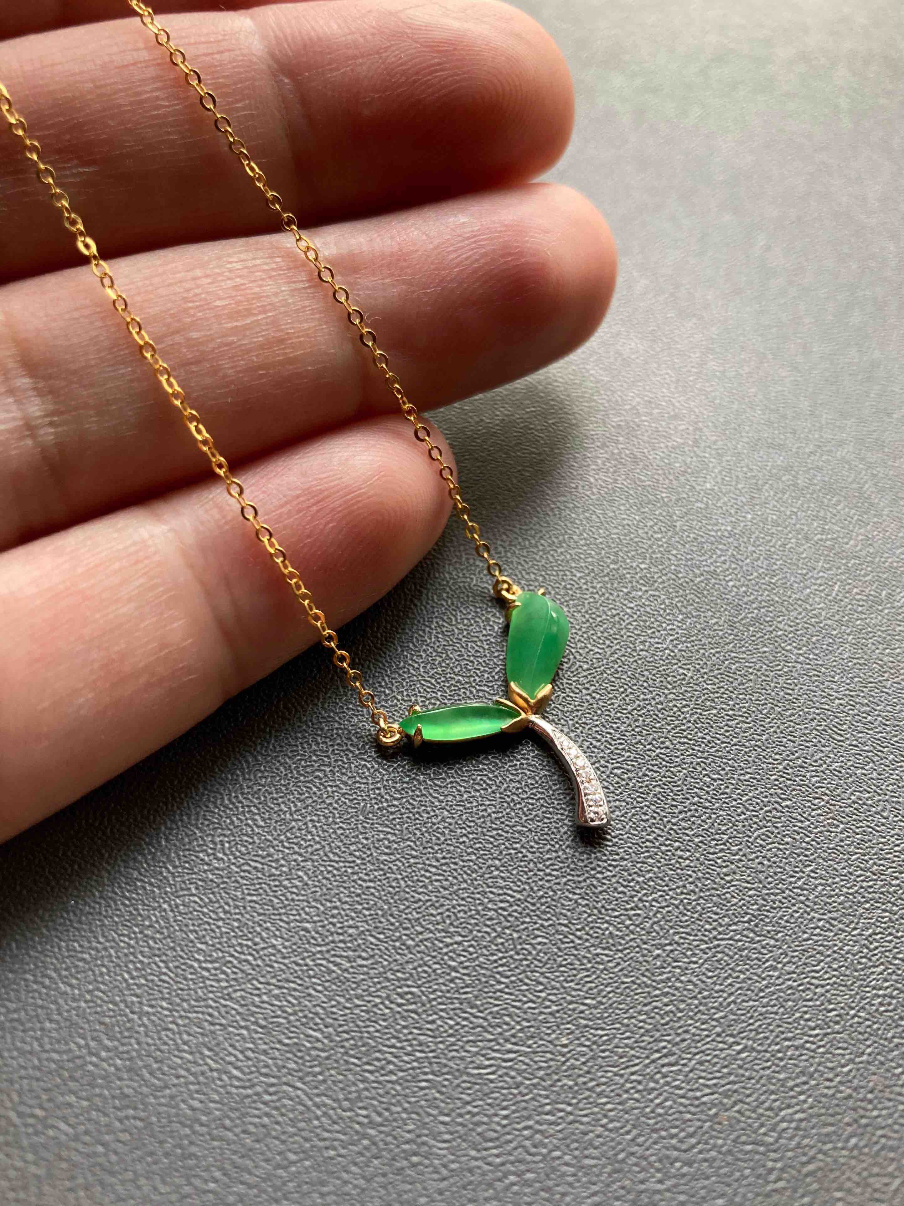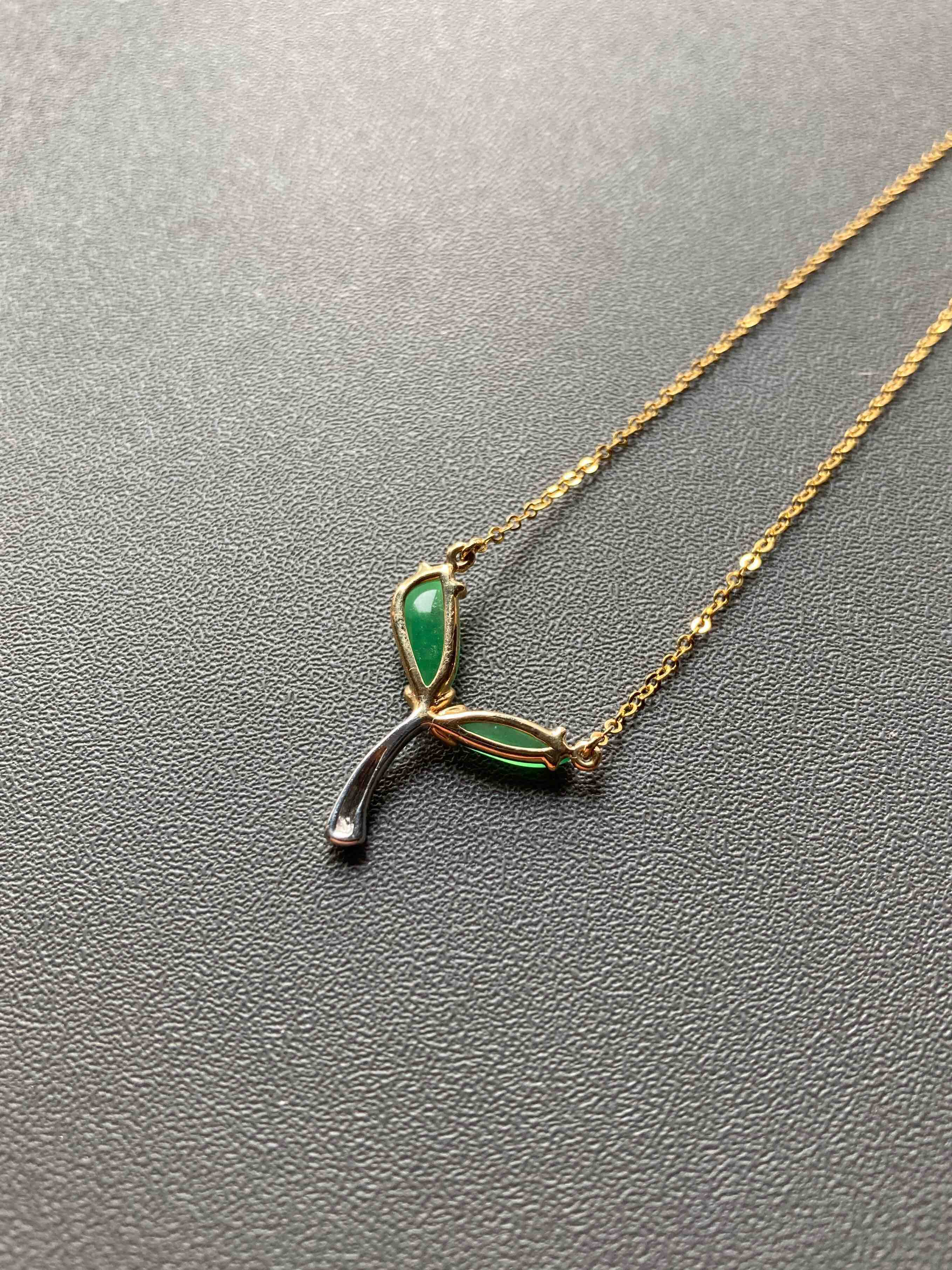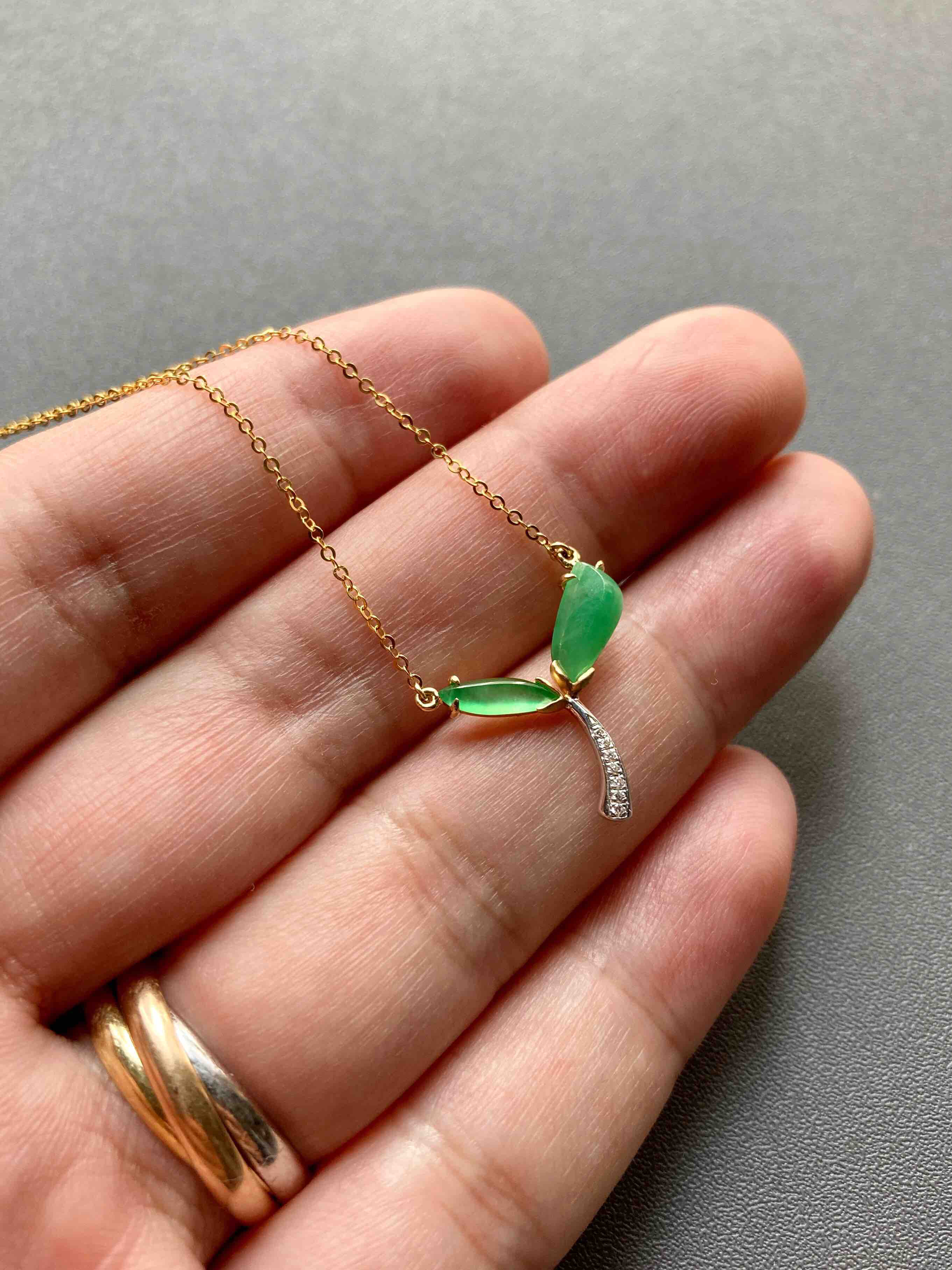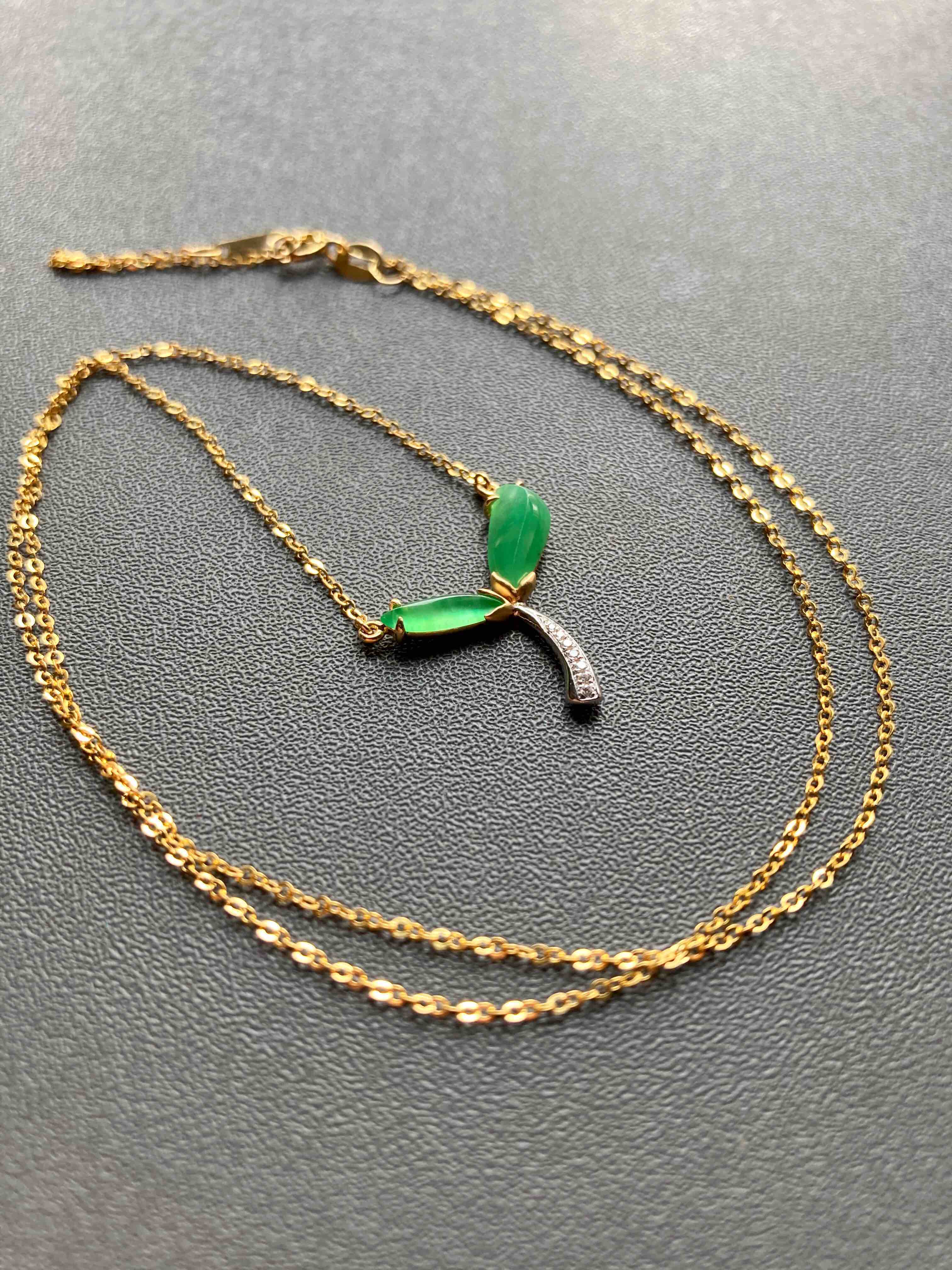 高冰种阳绿翡翠萌芽锁骨链18k黄金白金钻石镶嵌