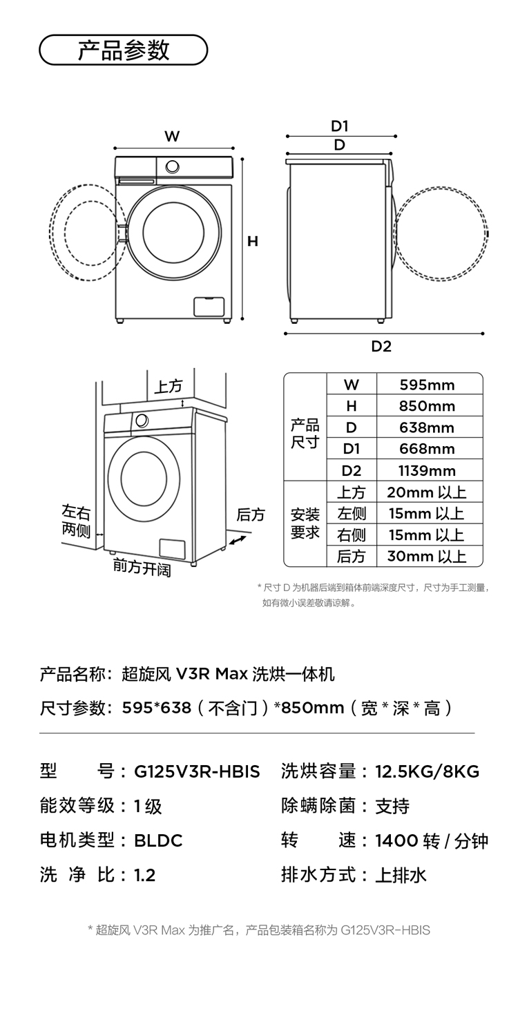 【新品上市】TCL超旋风V3R Max12.5公斤大容量洗烘一体智能投放 G125V3R-HBIS