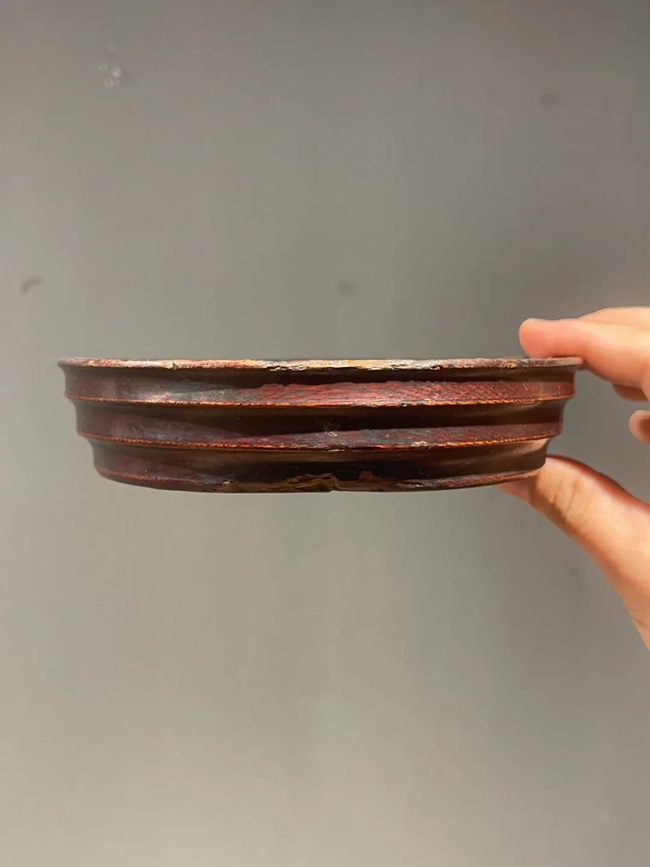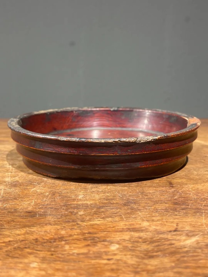楠木雕琢髹漆弦纹香盘,顺丰包邮