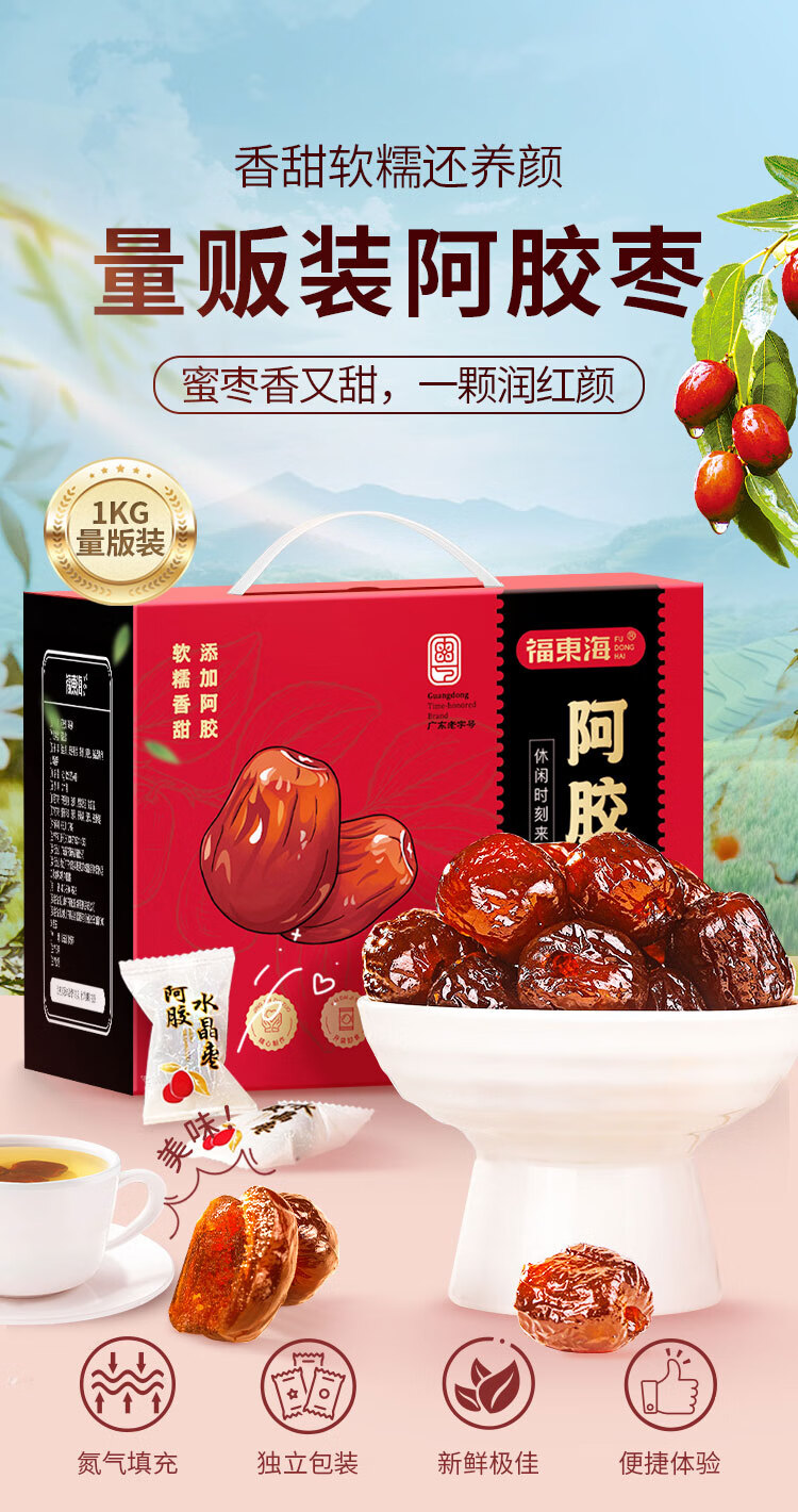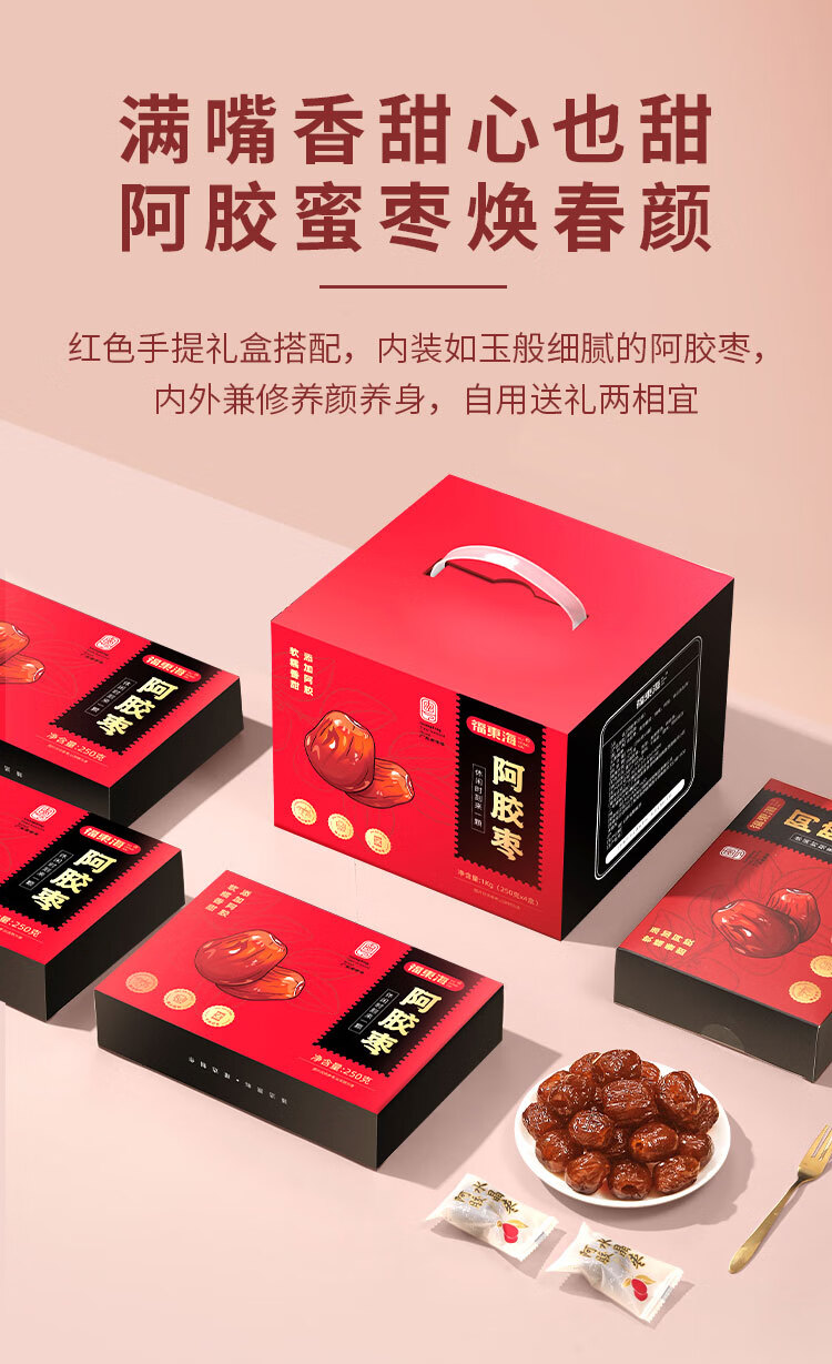 福东海 阿胶蜜枣礼盒【两斤】独立小包无核金丝红枣零食即食蜜饯送礼