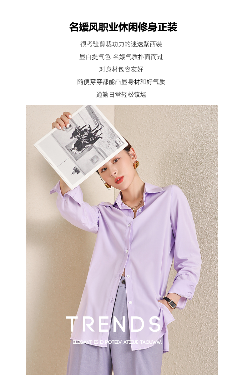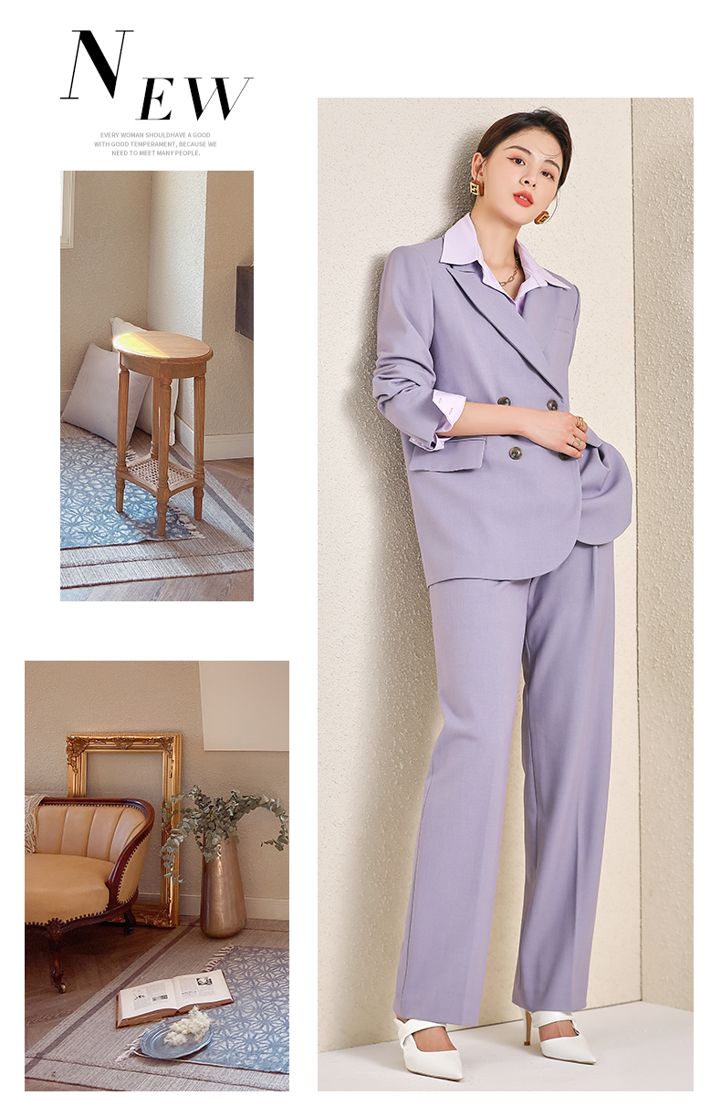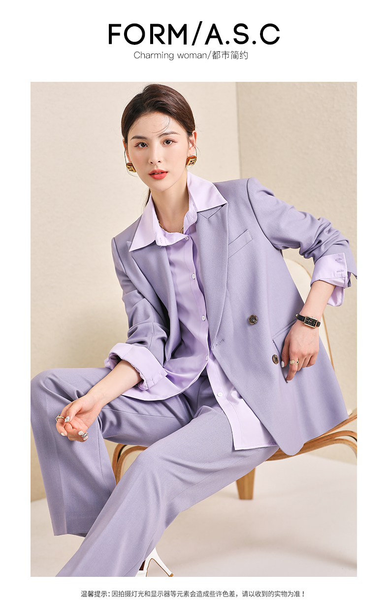 浅紫色长袖韩版休闲职业装OL通勤面试