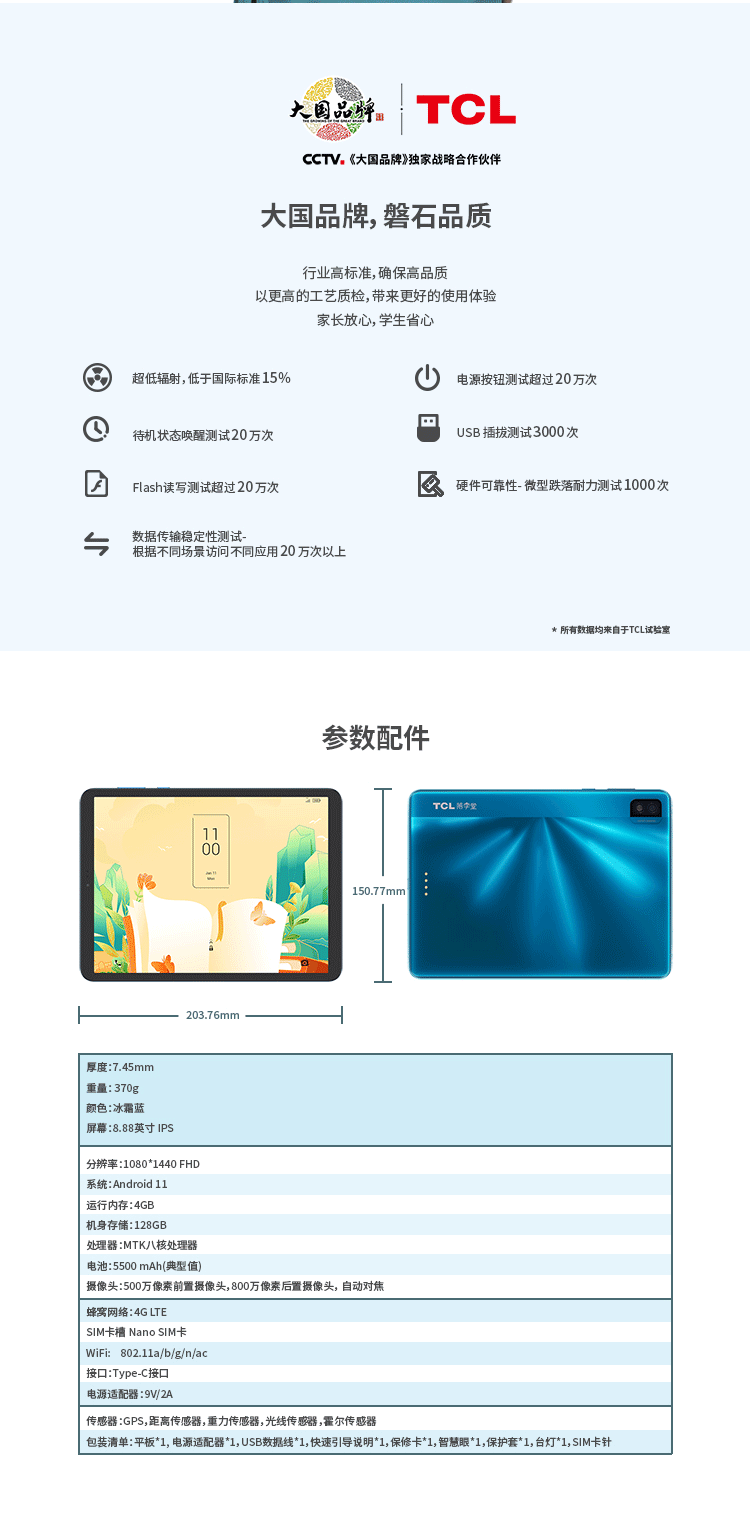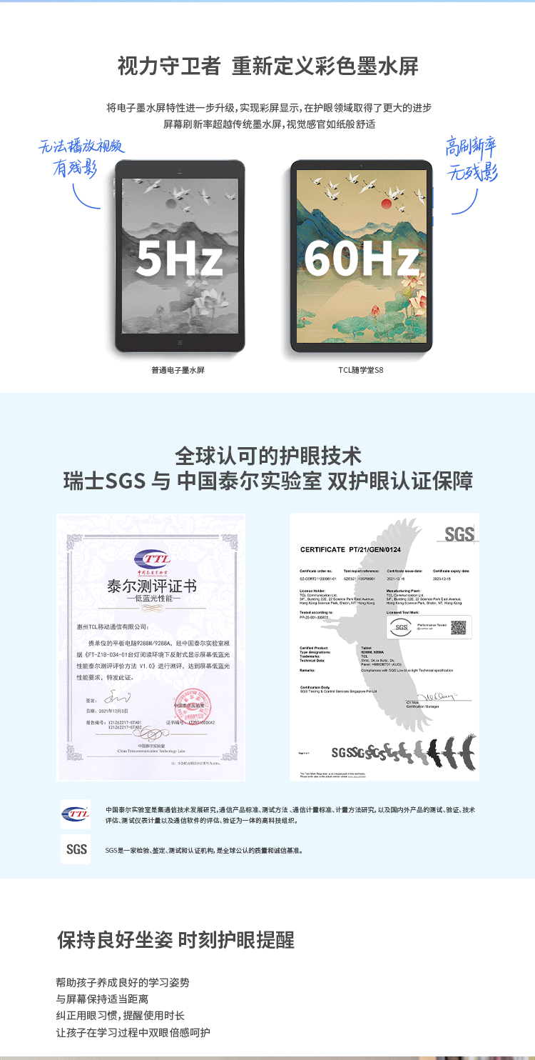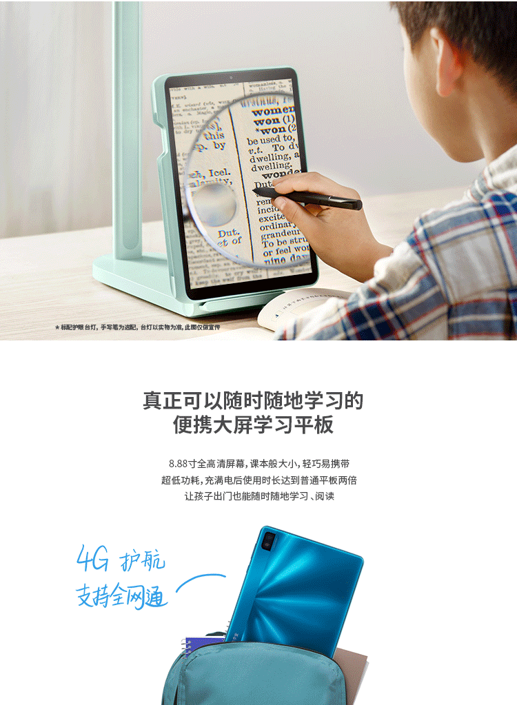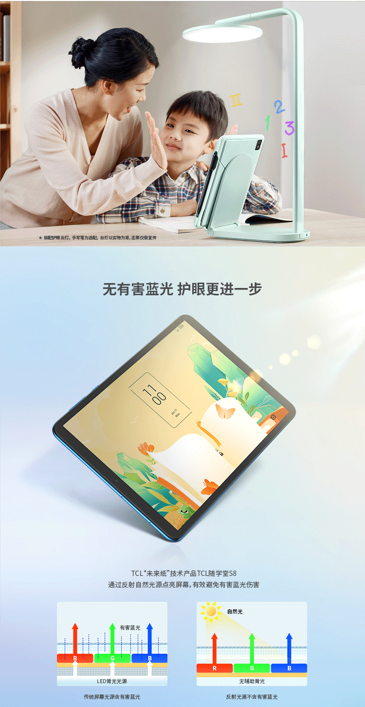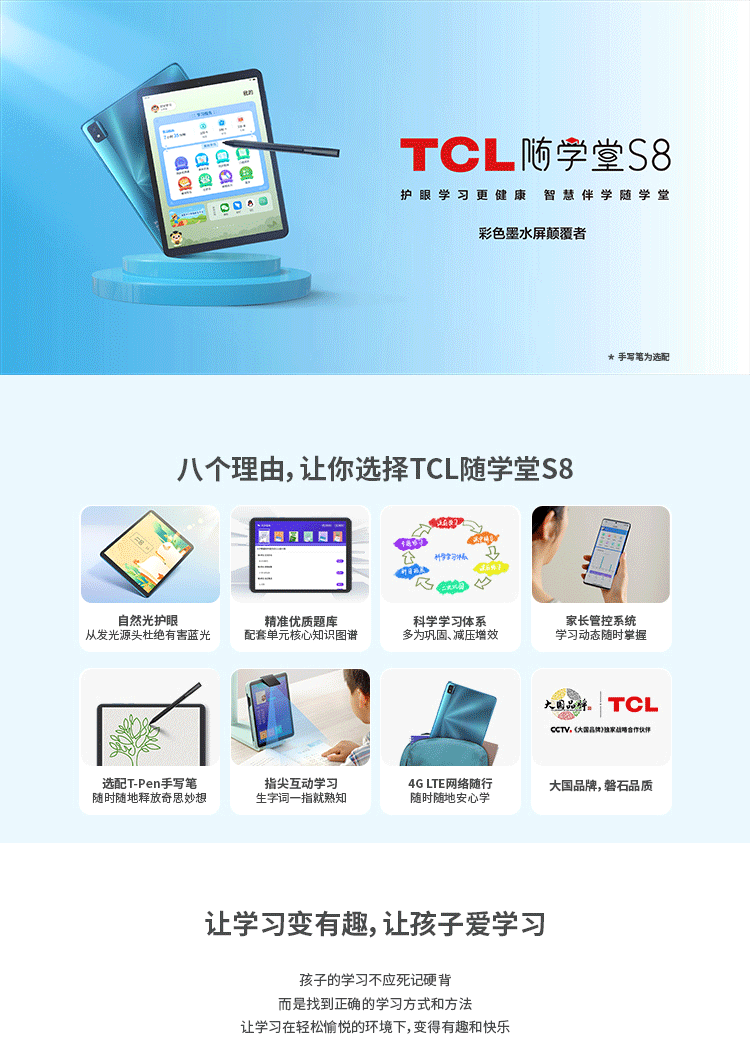 TCL随学堂S8 4+128G 8.8英寸未来纸护眼屏 全反射屏护眼学生平板 学习机平板 英语学习机 网课机 K12同步教材辅导