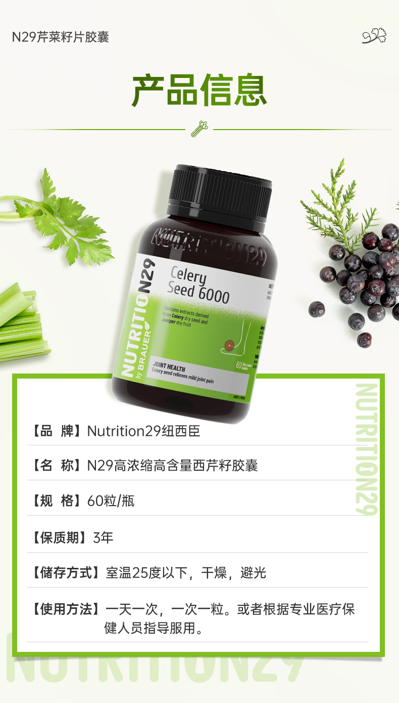 【原装进口】Nutrition29纽西臣芹菜籽精华片60片