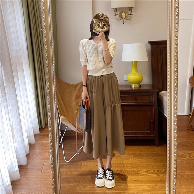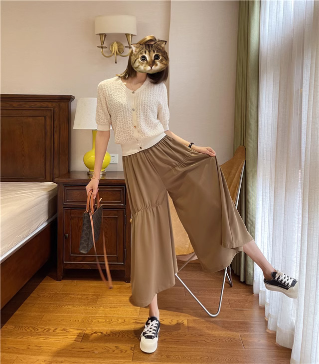 【2024新款上市】冰丝阔腿裙裤 高腰冰丝裙裤 宽松显瘦 性感提臀 修饰腿型 高腰垂感 柔顺飘逸