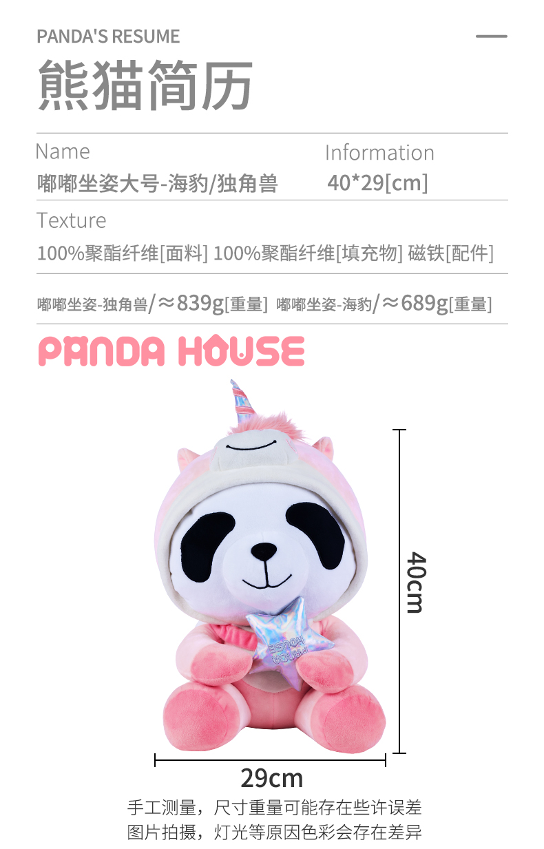 熊猫屋PANDAHOUSE 嘟嘟坐姿公仔大号-独角兽/海豹 送纸袋
