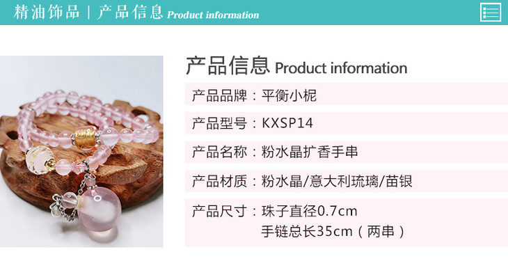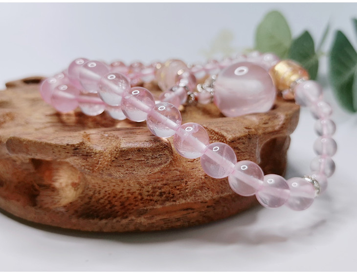 粉水晶 意大利琉璃 2圈扩香手串 手链 滴精油