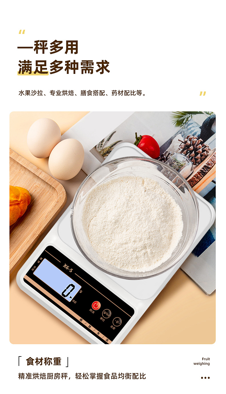 【精致生活 一称搞定】家用厨房秤电子秤食物烘焙秤小型精准称重器天平克度称