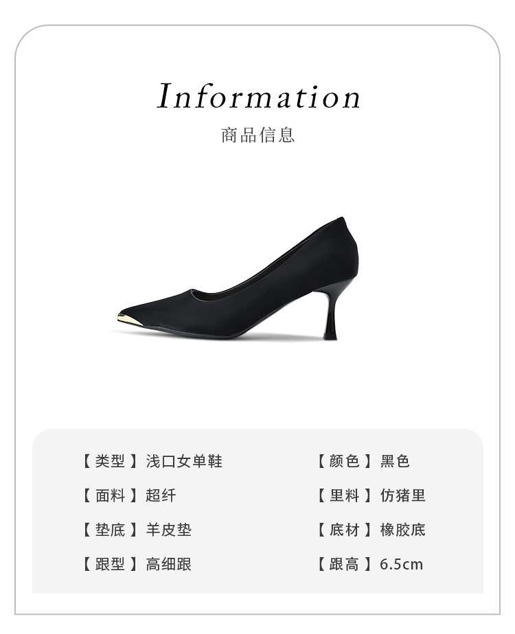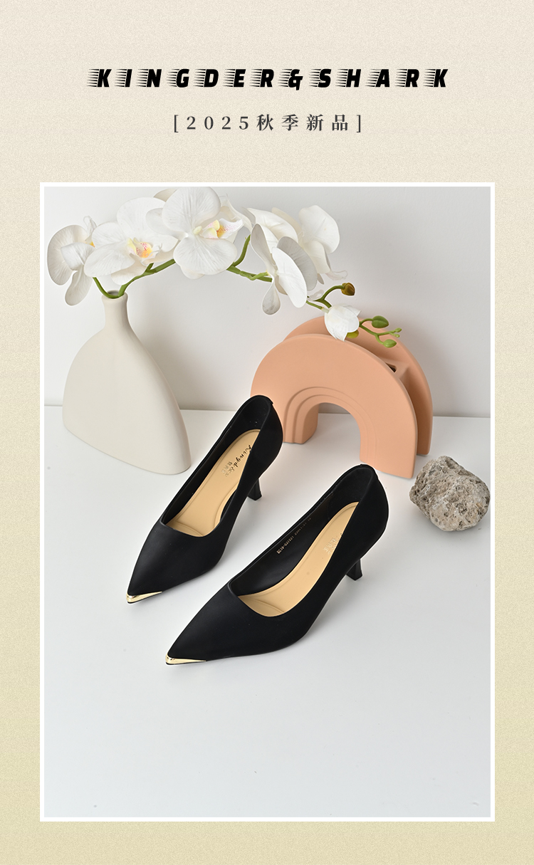 经典鲨女鞋2025秋季专柜新品简约尖头6.5cm一脚蹬气质细高跟鞋KC19-537221