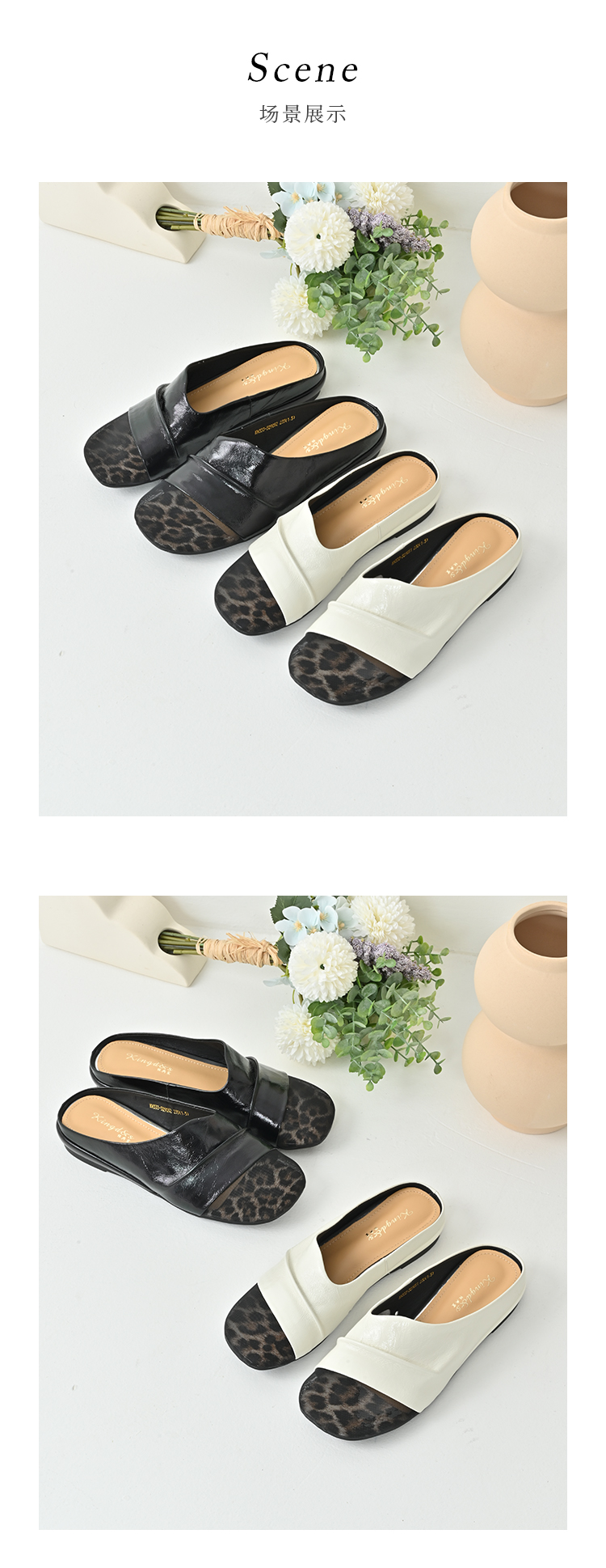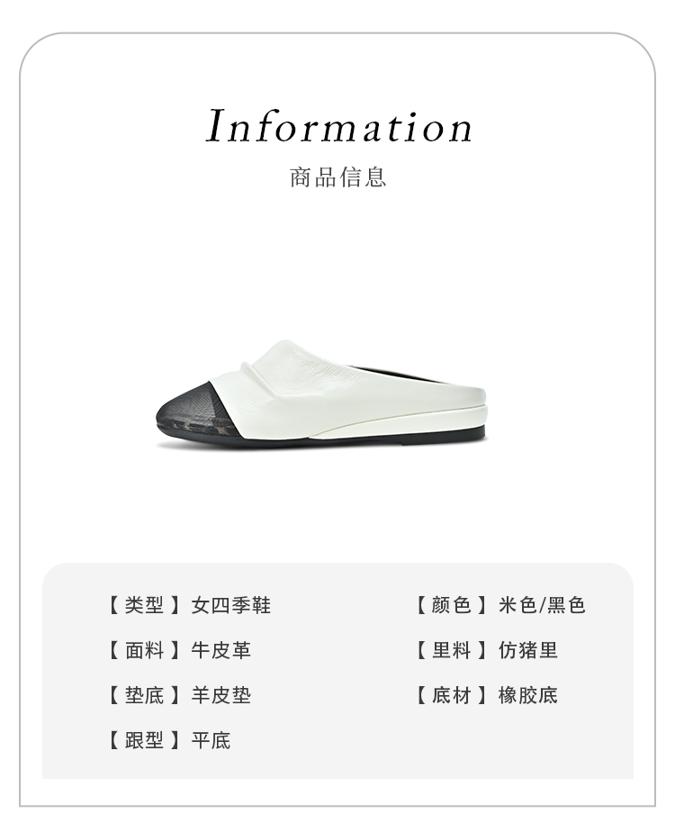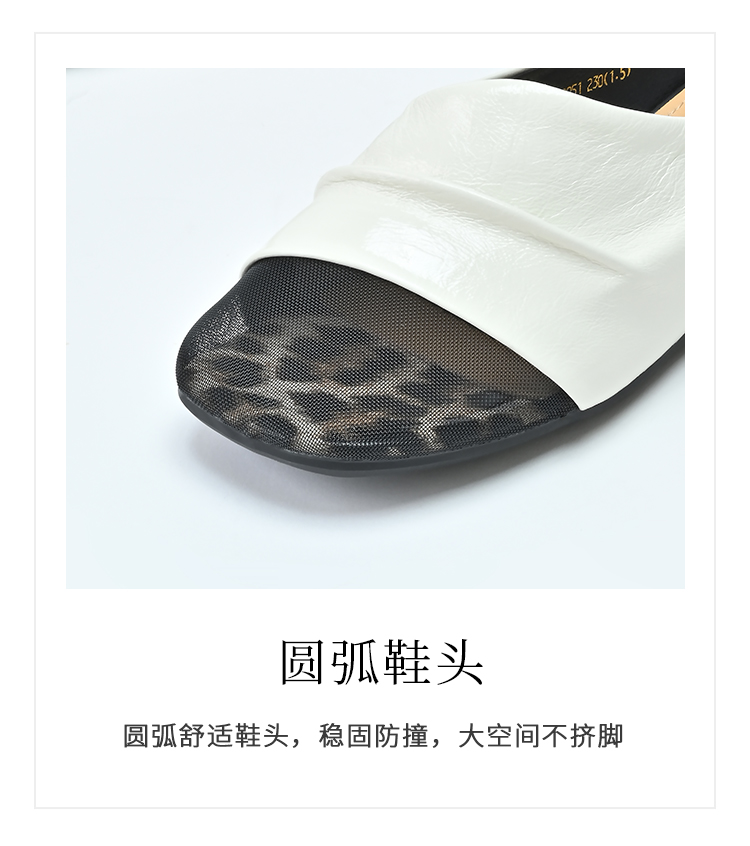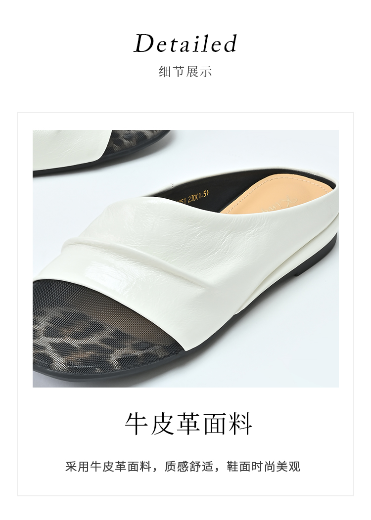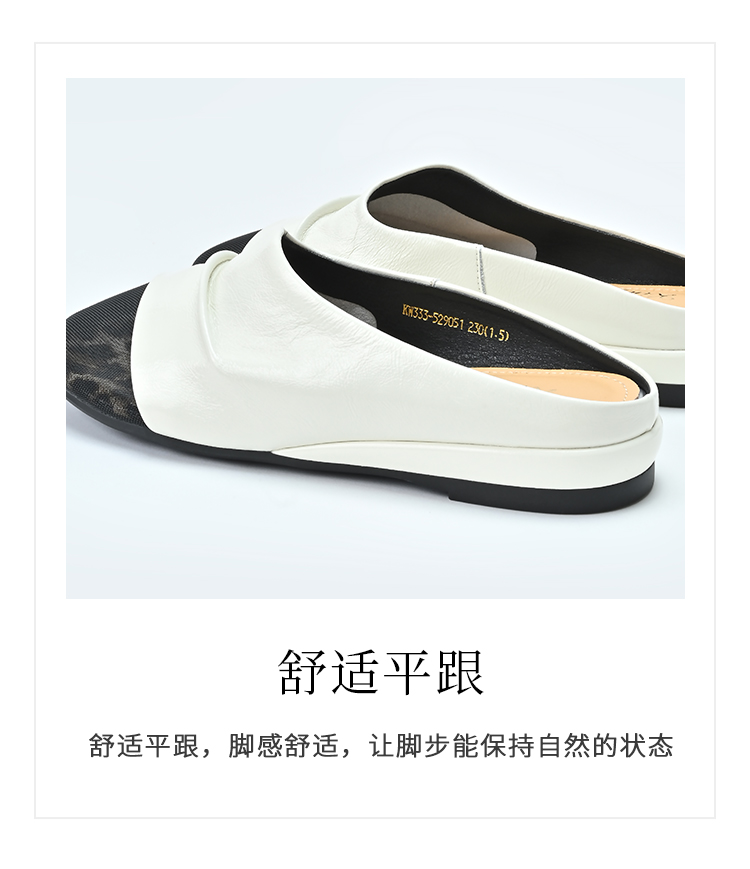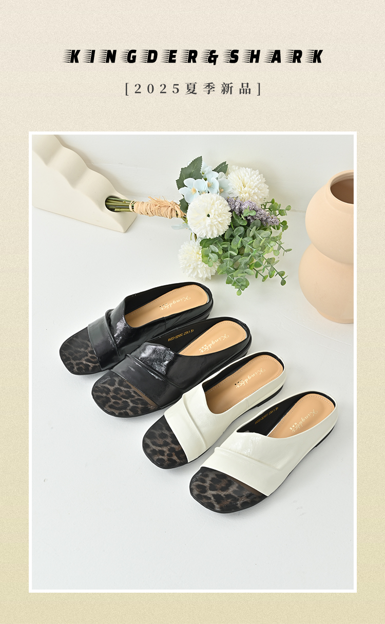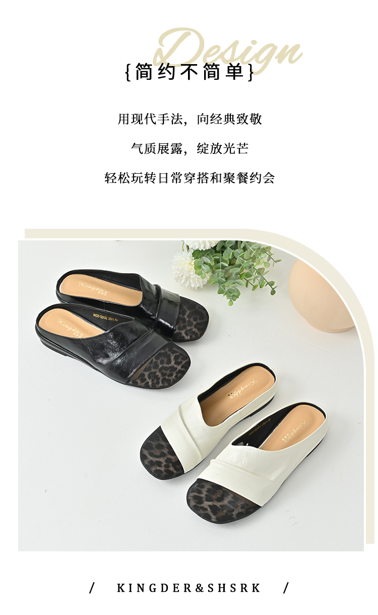 经典鲨2025夏季新款牛皮革法式复古拼接时尚懒人半拖凉鞋女KW333-529051