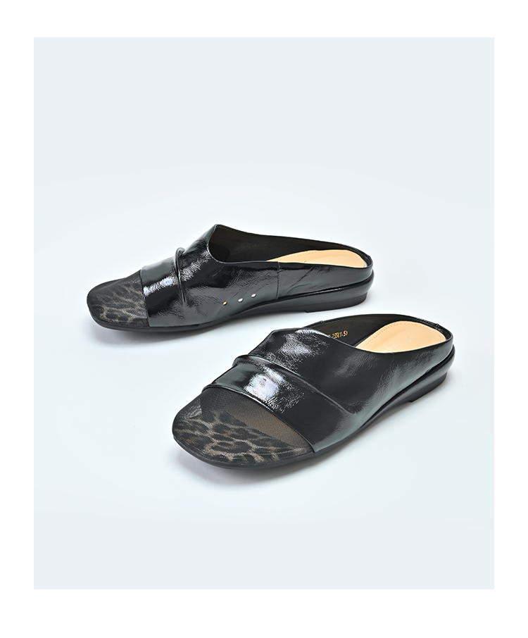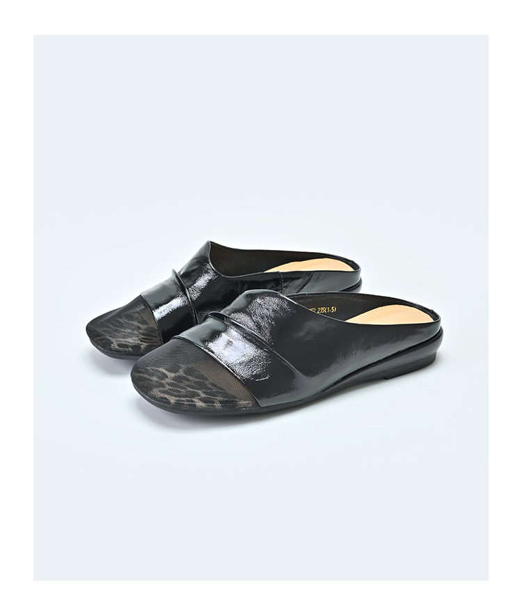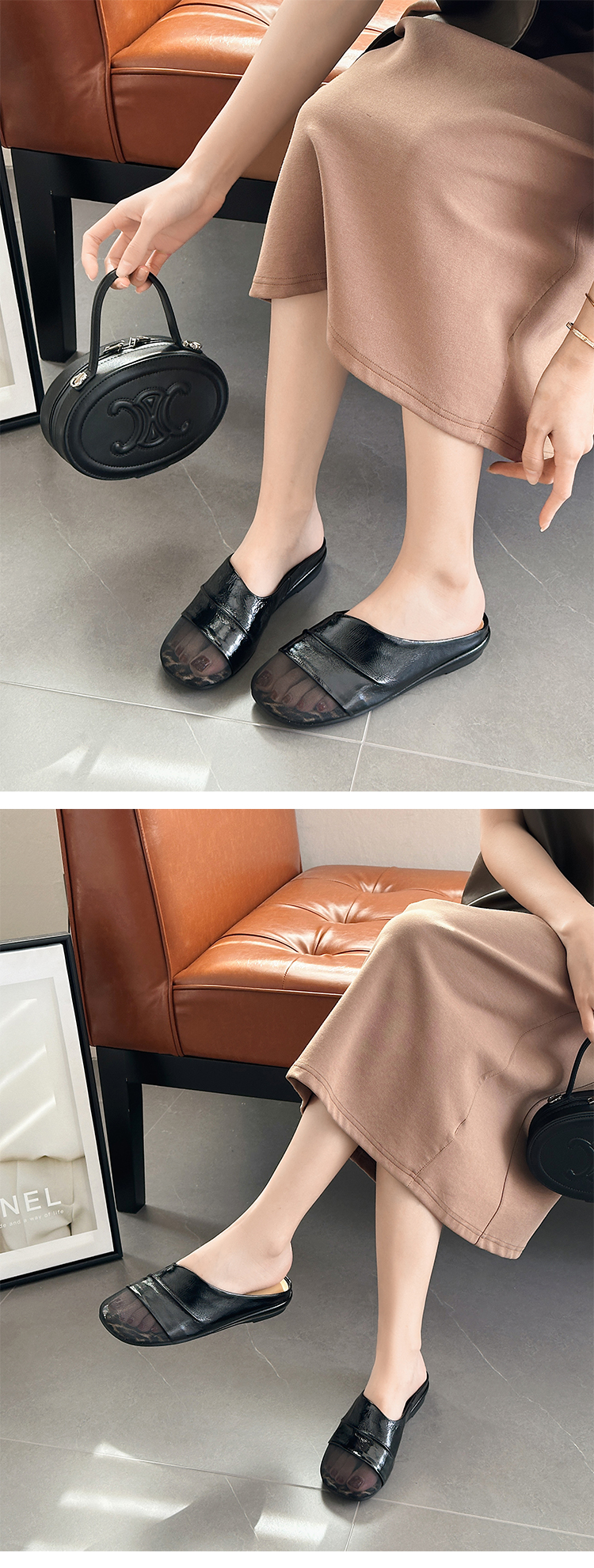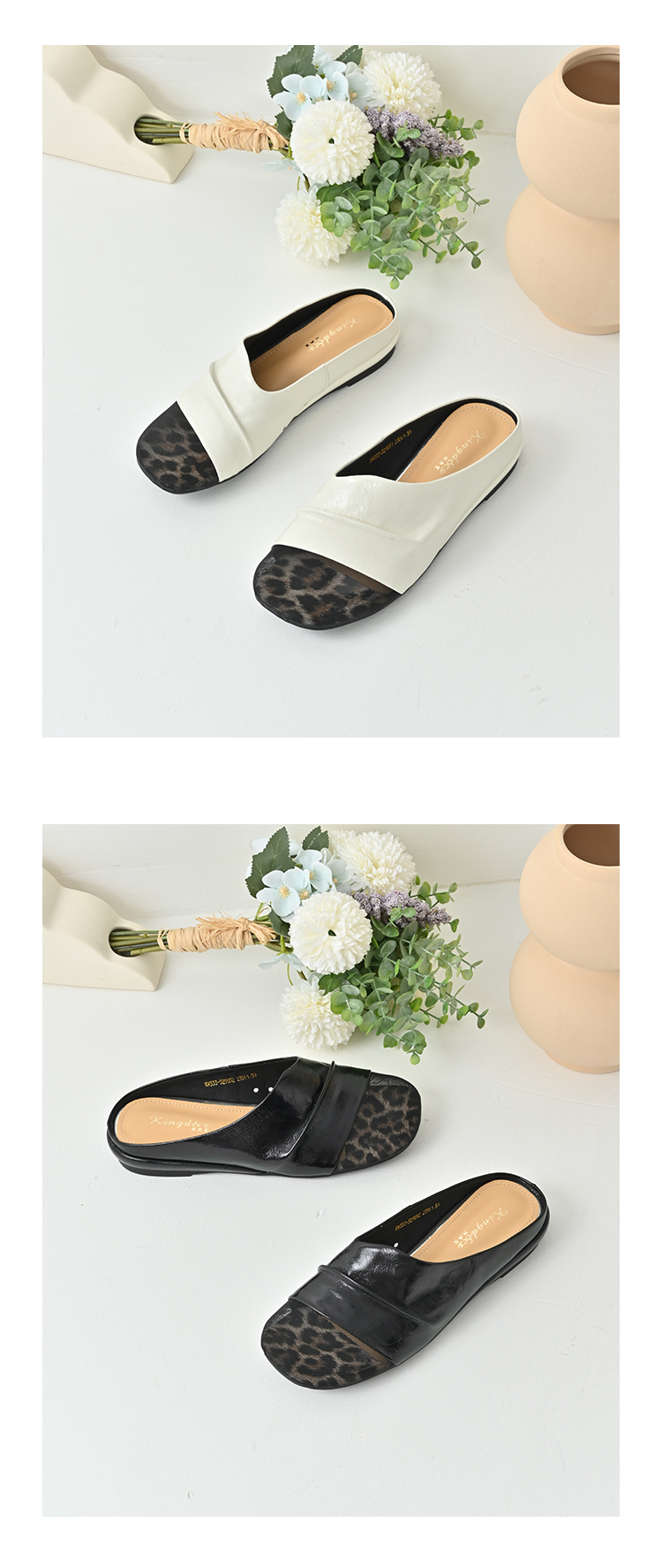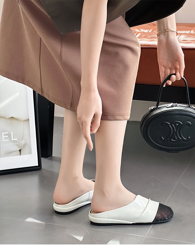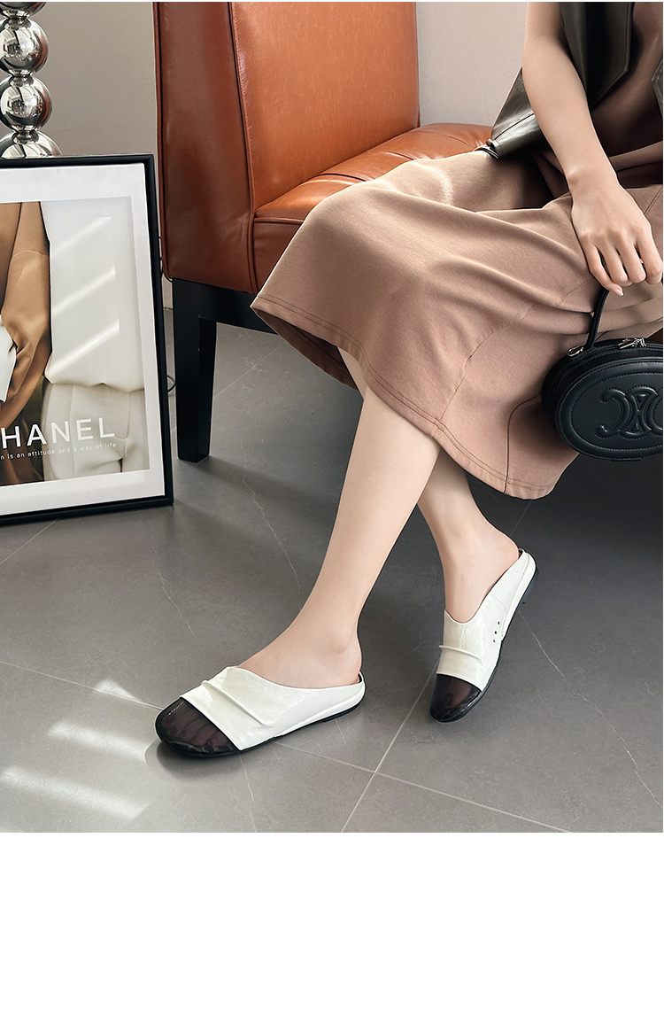 经典鲨2025夏季新款牛皮革法式复古拼接时尚懒人半拖凉鞋女KW333-529051