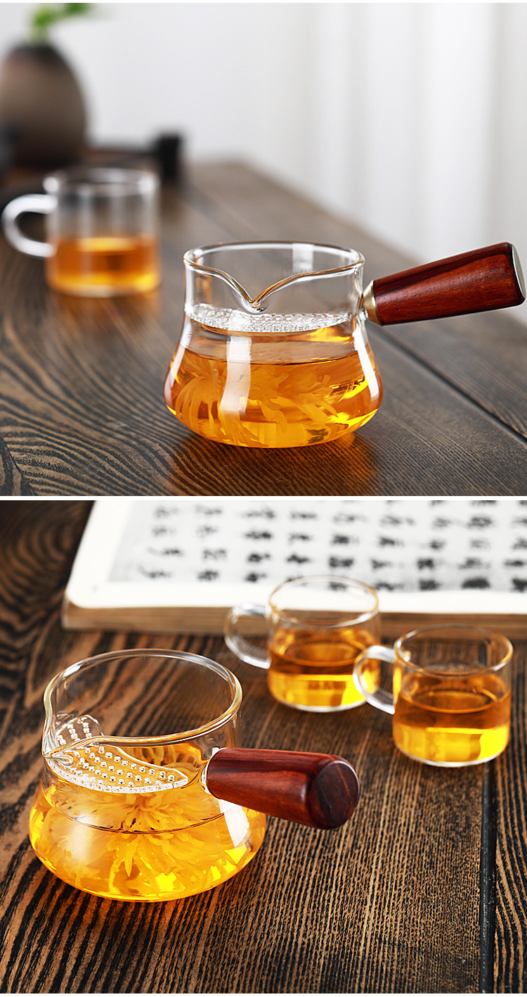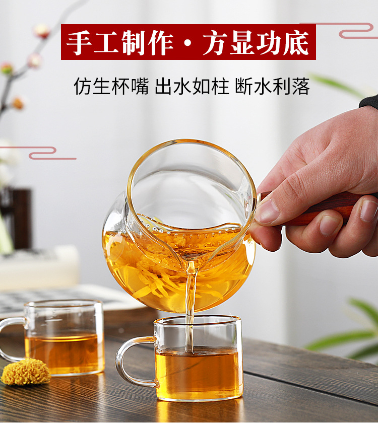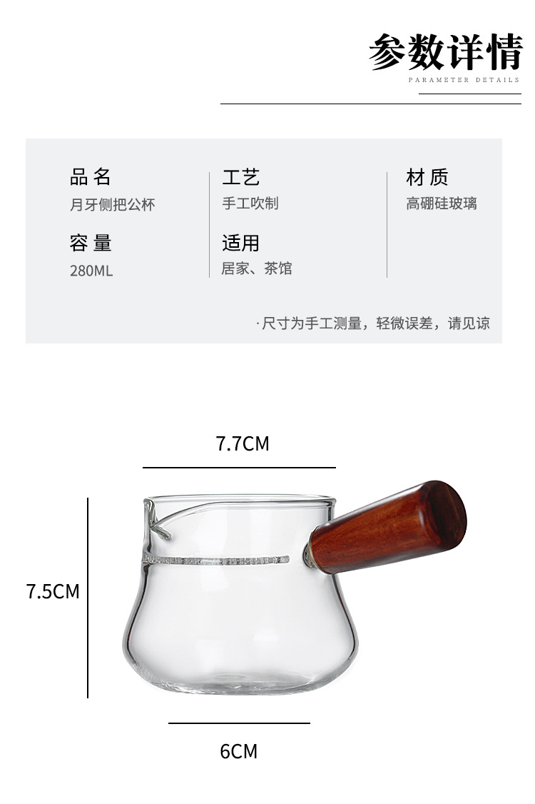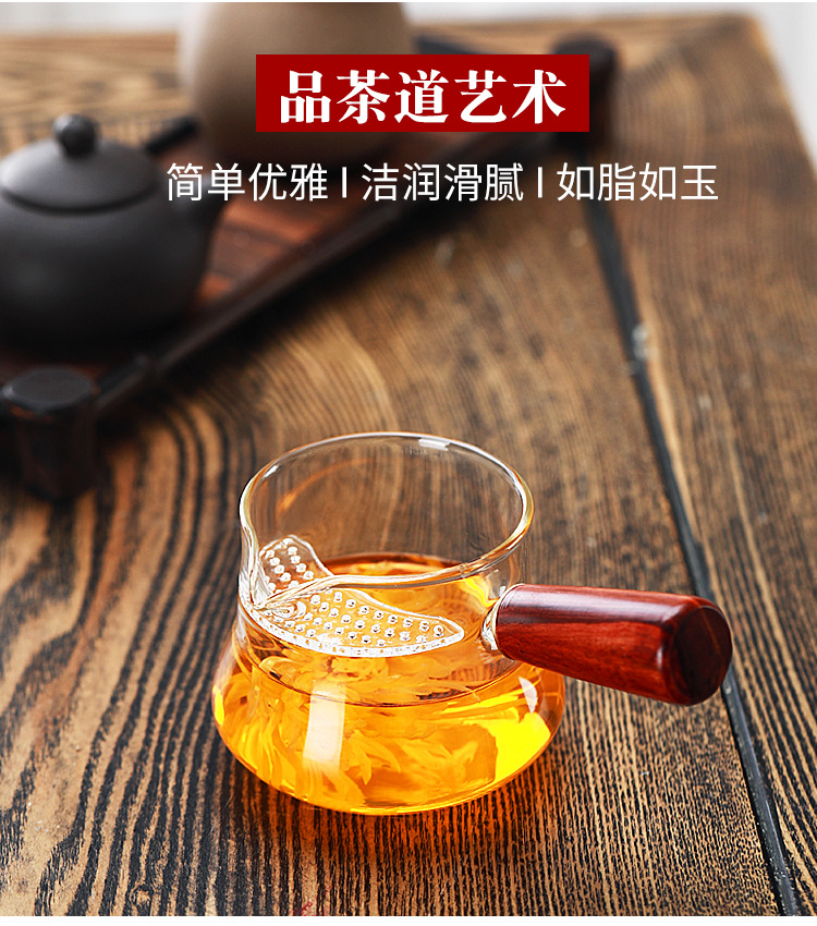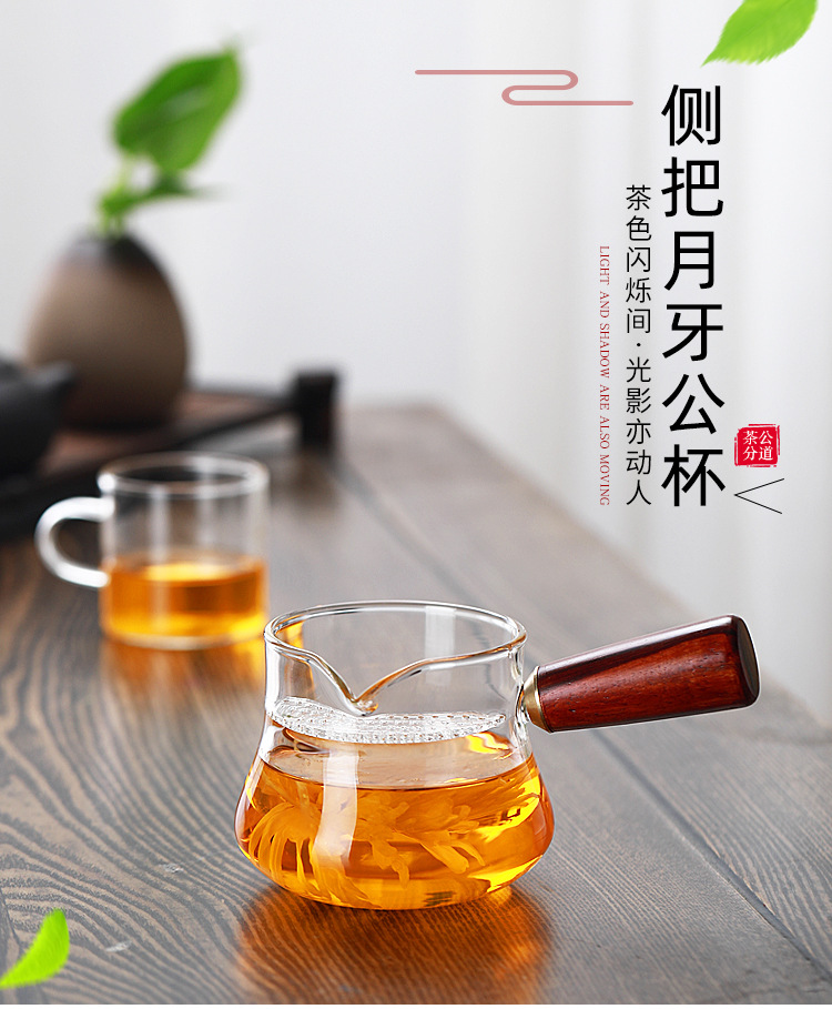 永利汇木把玻璃公道杯家用透明加厚茶海月牙过滤配件耐热茶漏杯