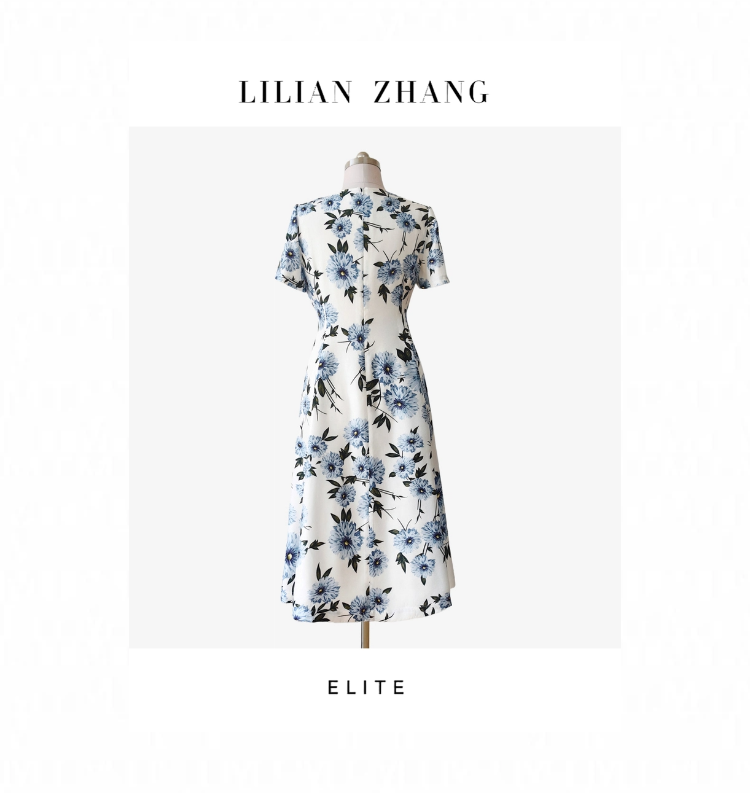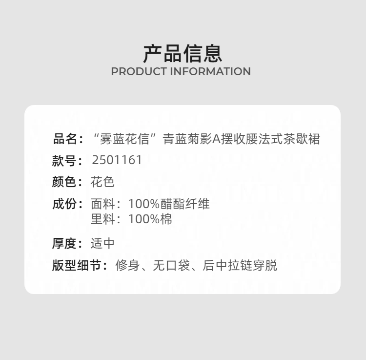 静奢风 「松弛度假风」 雾蓝花信青蓝菊影A摆收腰法式茶歇裙2501161