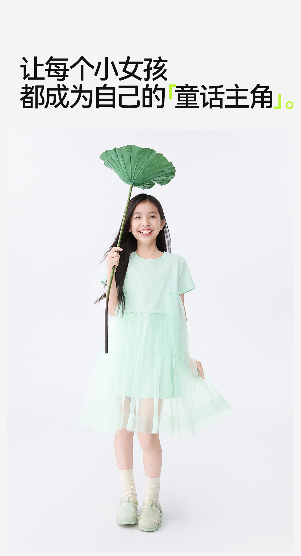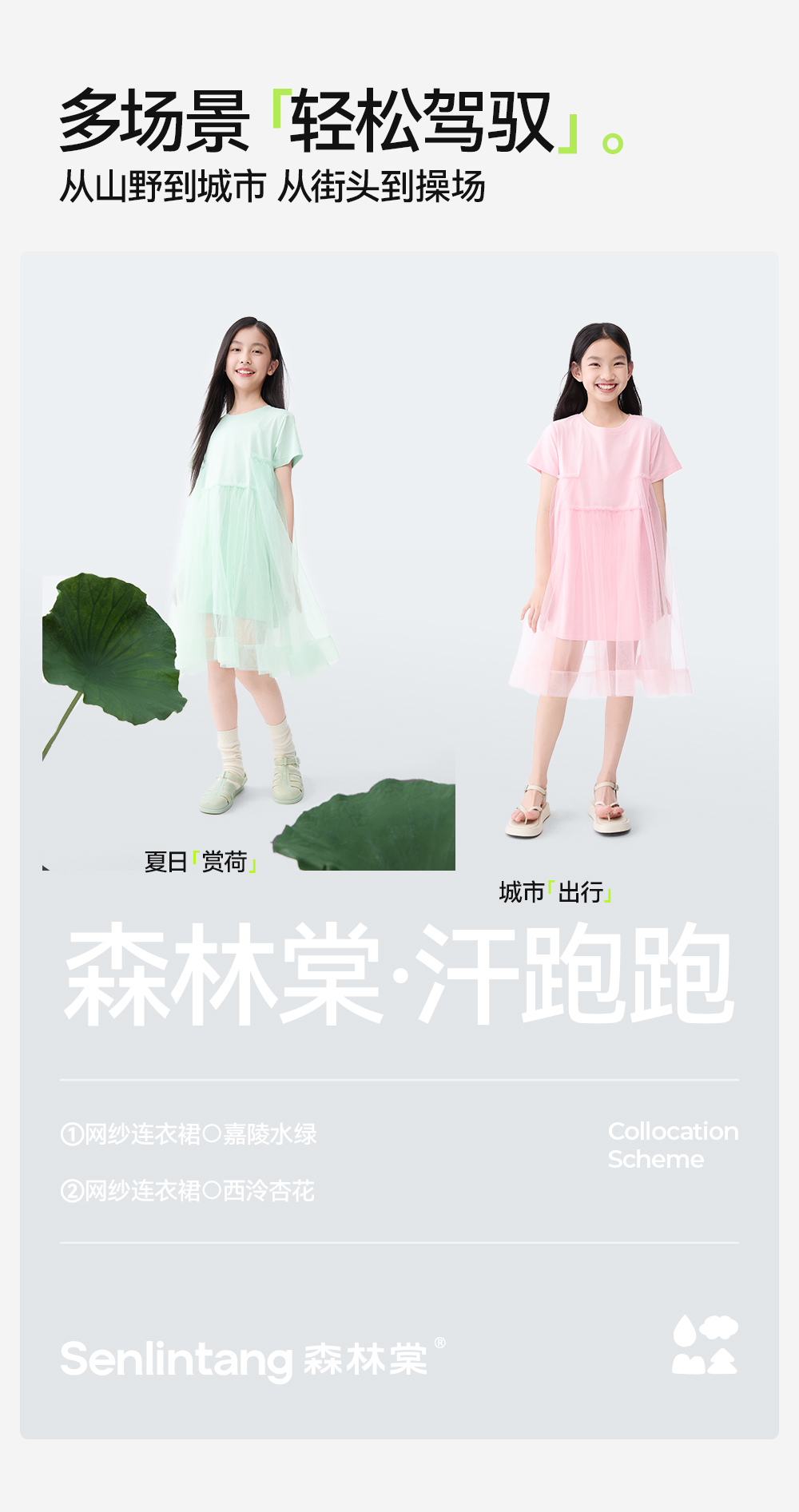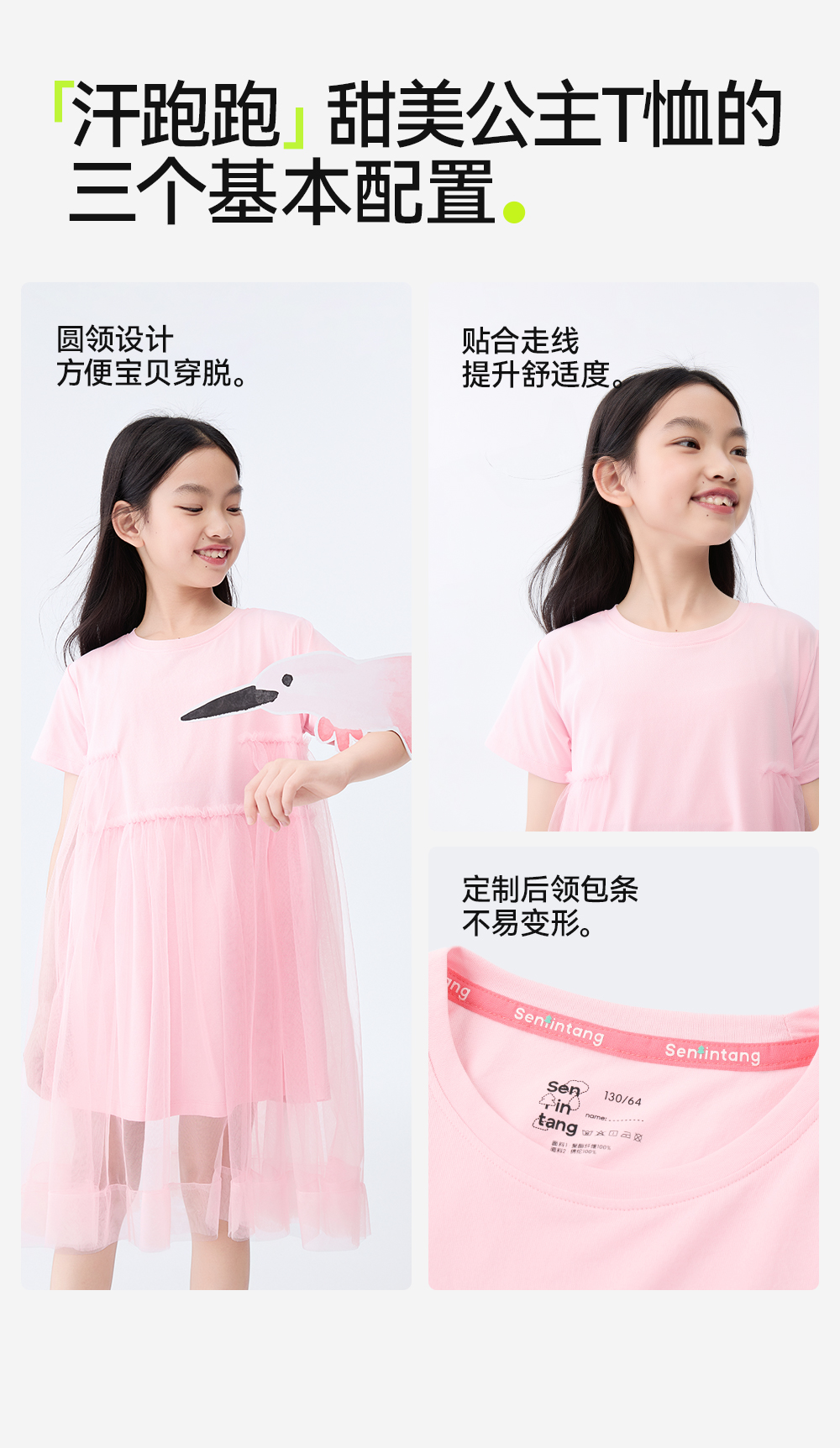 [屁侠推荐]汗跑跑网纱连衣裙森林棠25夏款女童公主风吸湿透气网纱T恤裙41132502