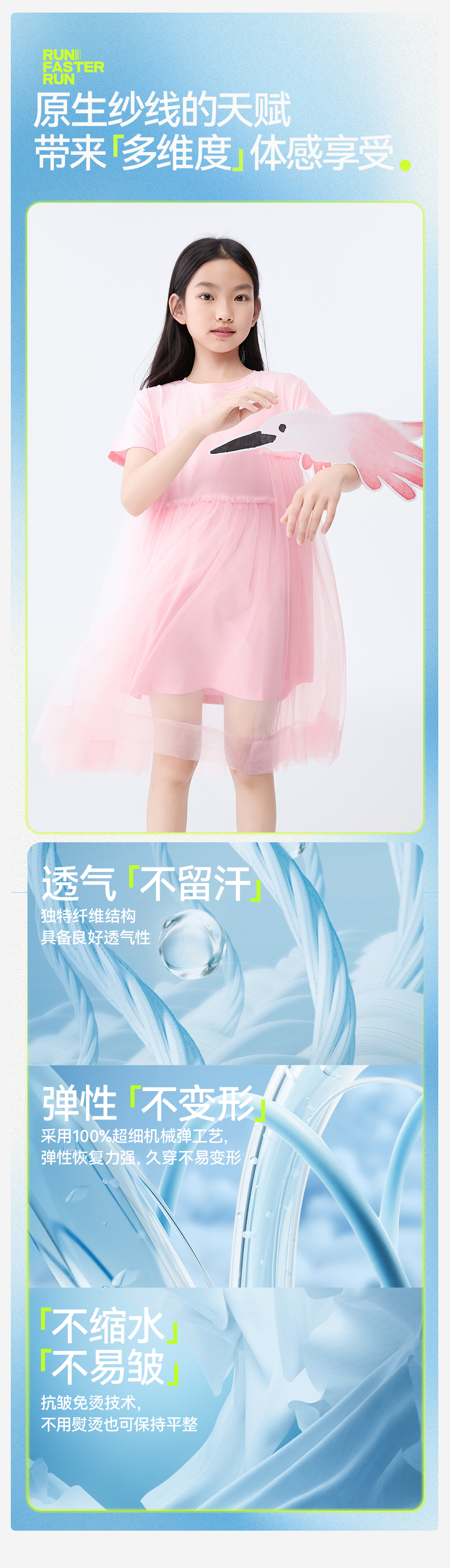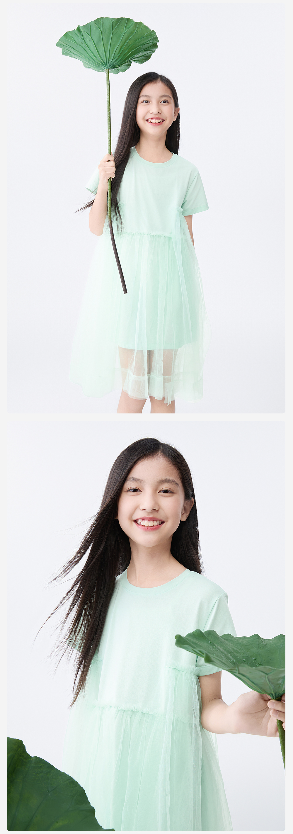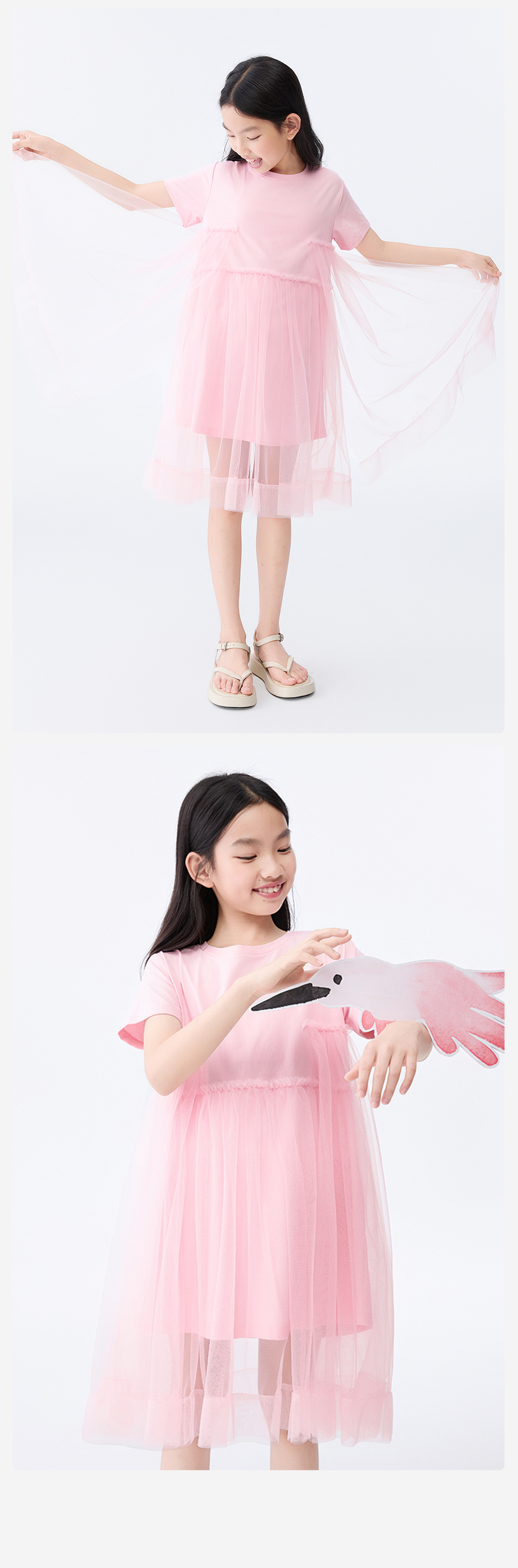 [屁侠推荐]汗跑跑网纱连衣裙森林棠25夏款女童公主风吸湿透气网纱T恤裙41132502