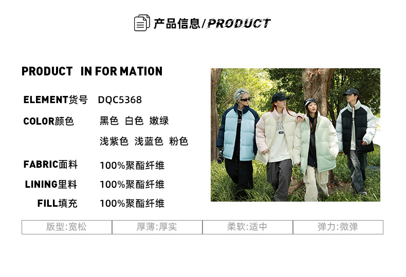 【年底大清仓!!】(春节预售:2月8日-25日停发)斯辰唯佳情侣宽松百搭拼接撞色棉衣外套A87-DQC5368