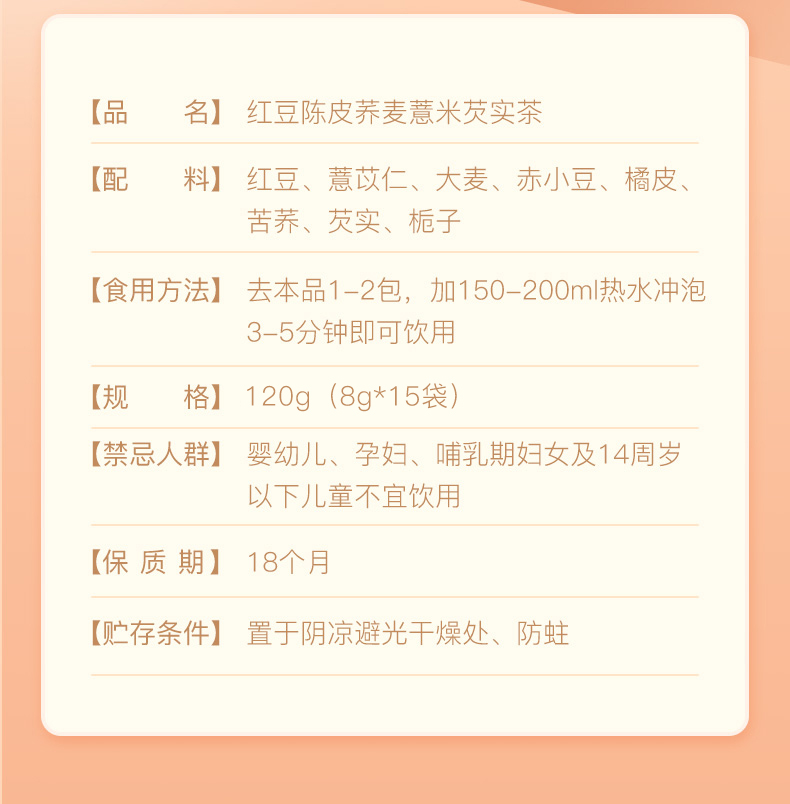 福东海 缓湿茶红豆陈皮荞麦薏米芡实茶12g*15包养生茶