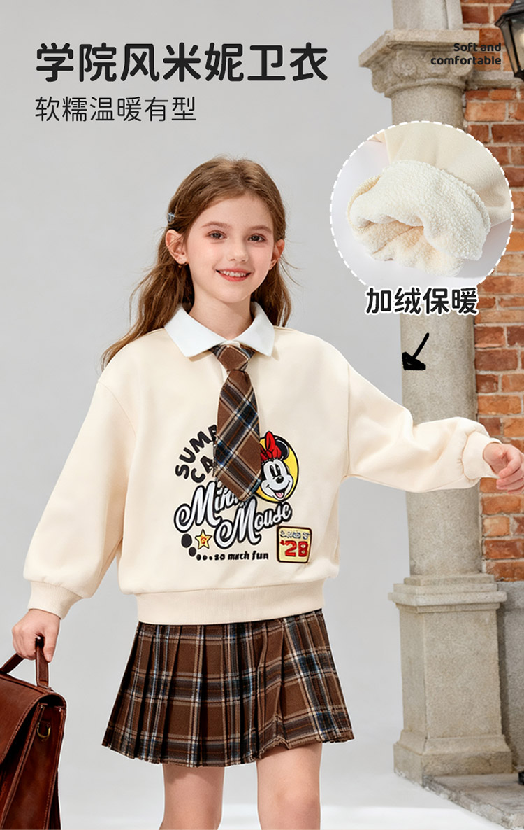 迪士尼女童秋冬套头卫衣加绒卫衣XD4DS093