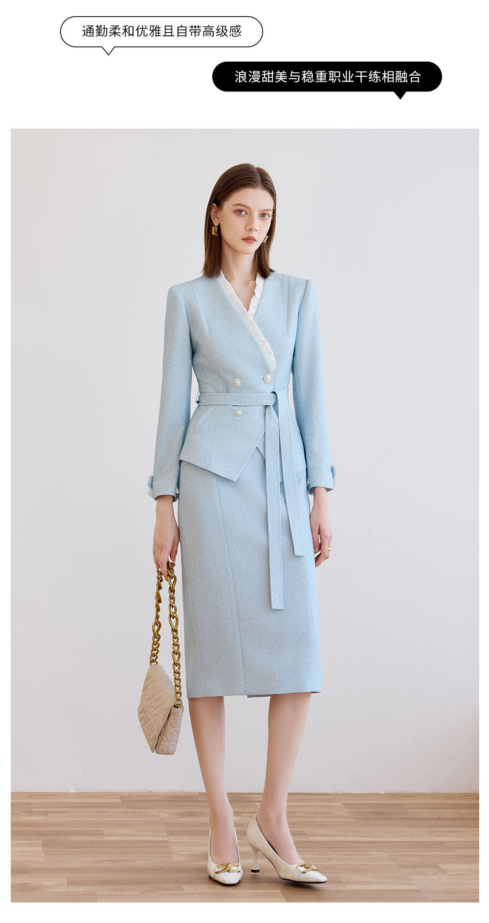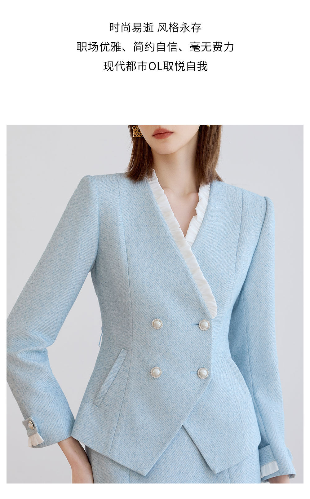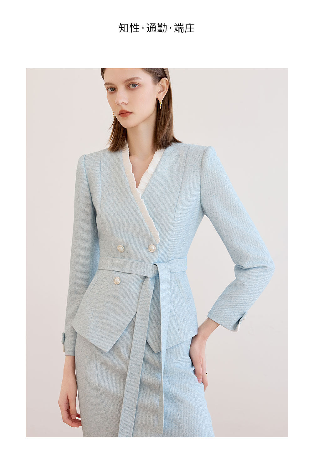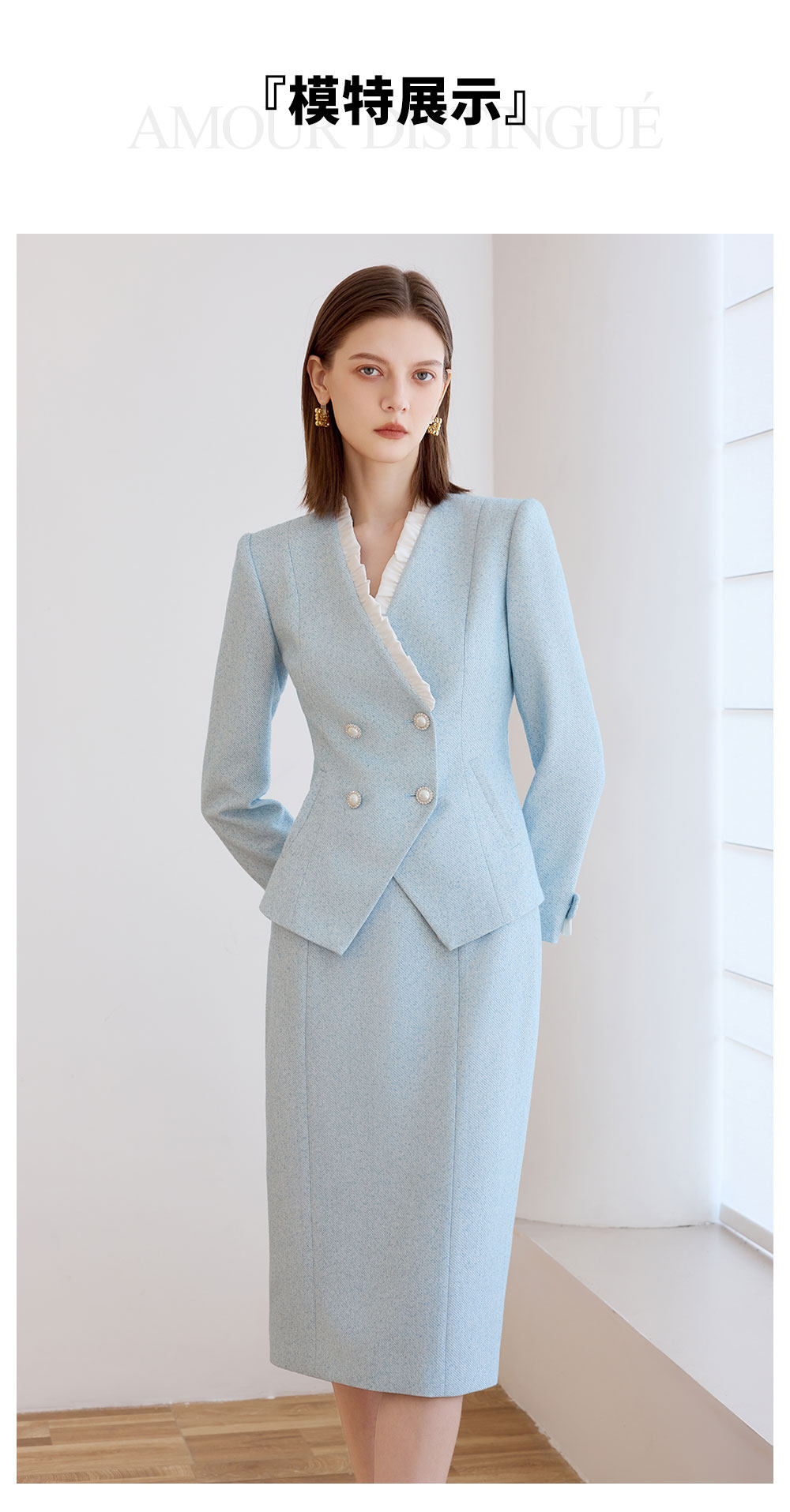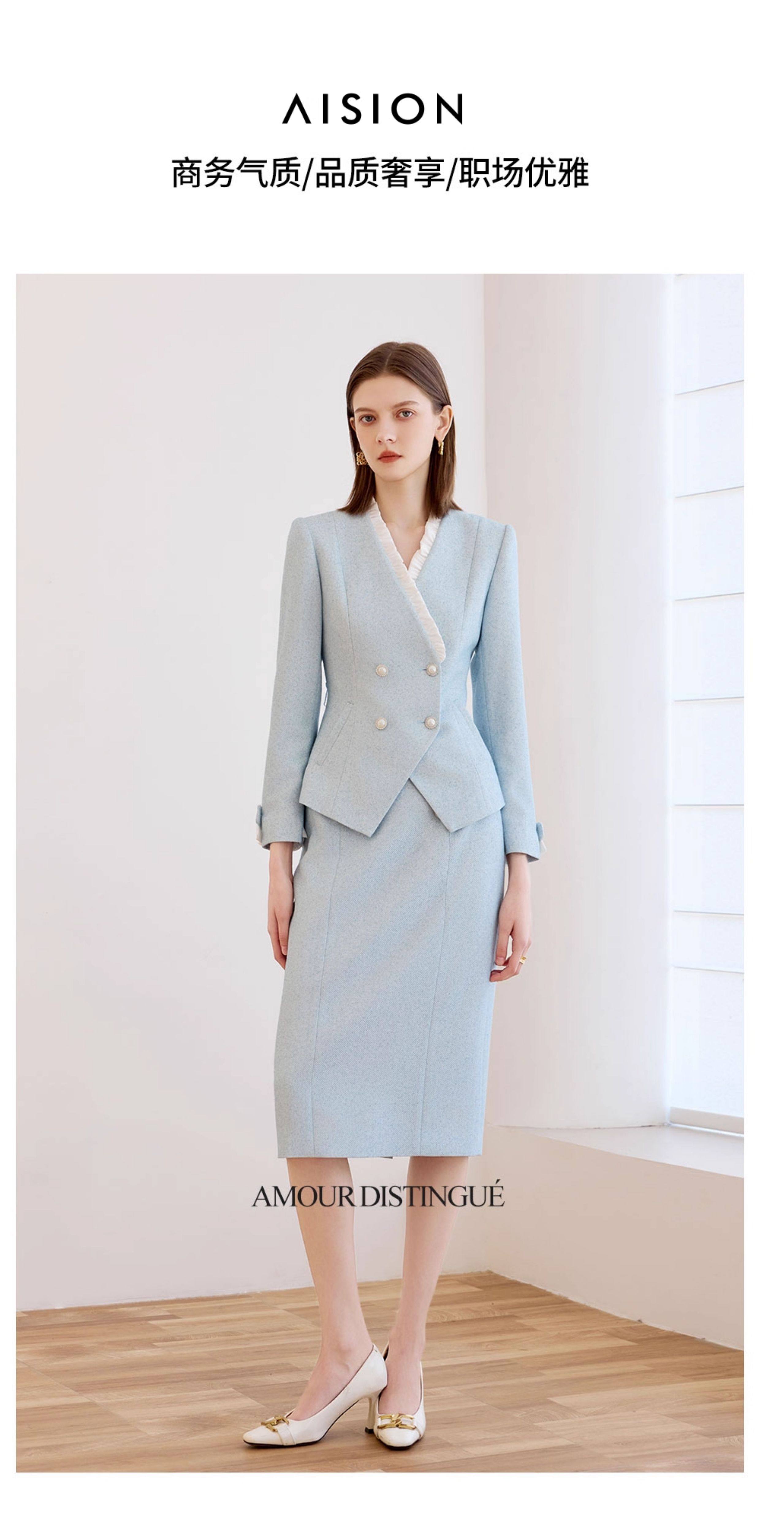 艾尚臣晨曦蓝西装套装女高端精致女职业装商务通勤厚西服两件套冬