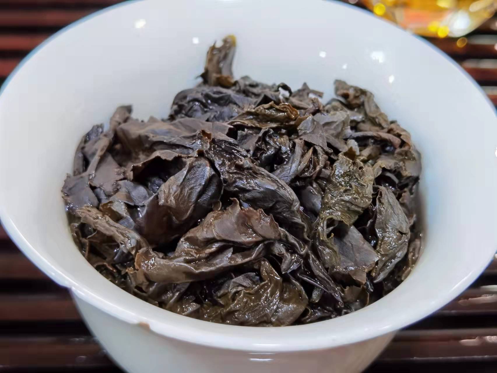 第四道:我们大家可以回头看看叶底:每一道逐渐苏醒,叶片质感非常好,后面会更容易辨别,大家多留意。