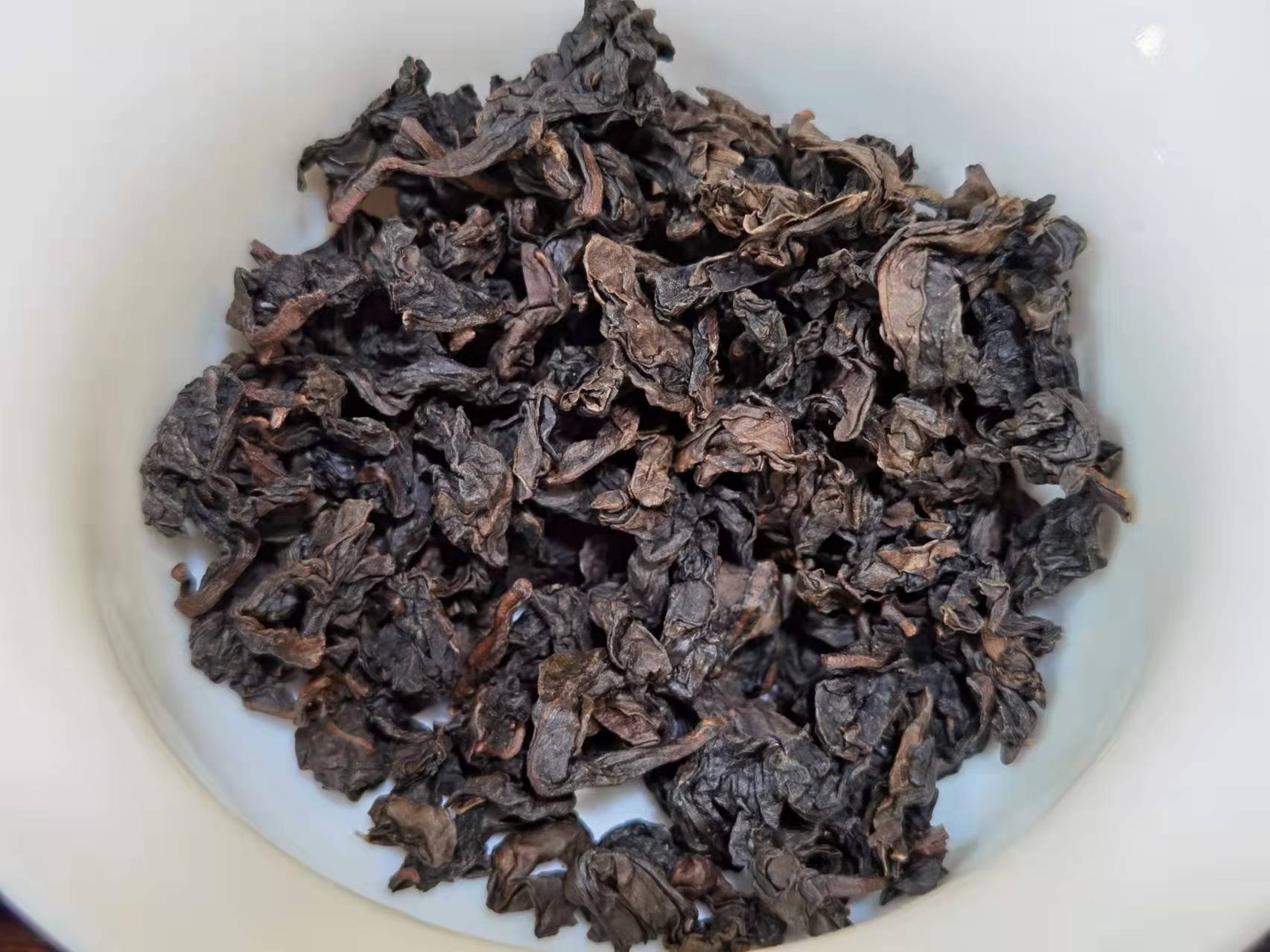 翻扣叶底及摊开叶底~~原料嫩、走水好、发酵充分,多样复合果香好,香气浓郁,铁韵雄厚,汤感粘稠有厚重感。