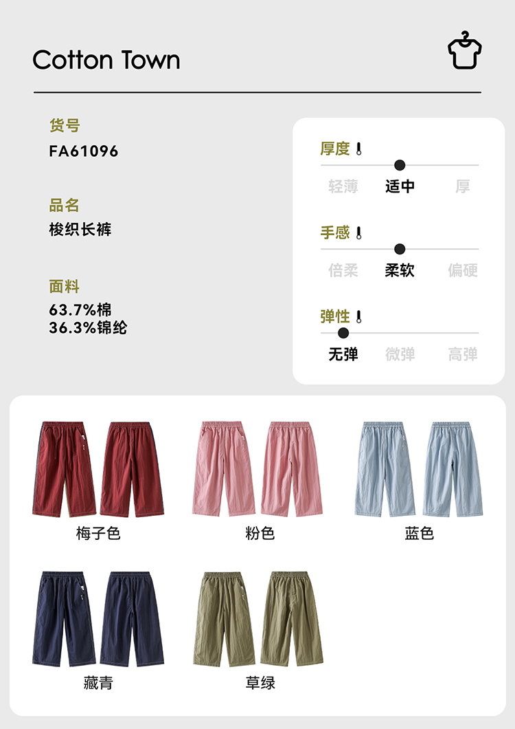 【梭织长裤】棉花堂 梭织长裤 A类 耐磨抗造 柔软有型 FA61096