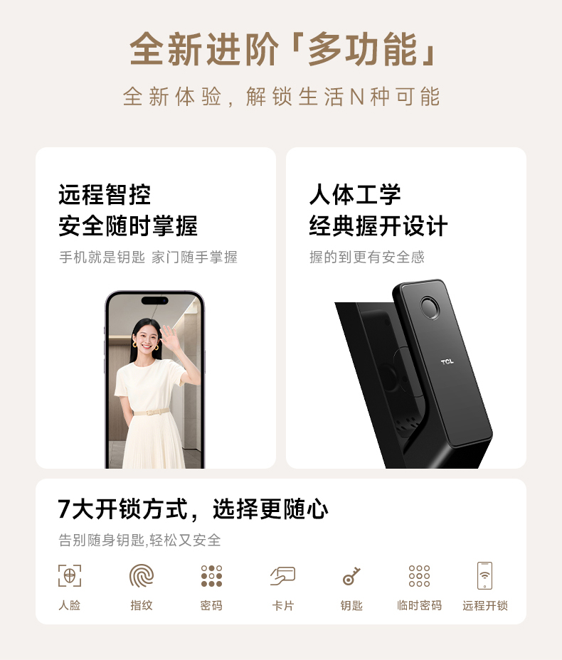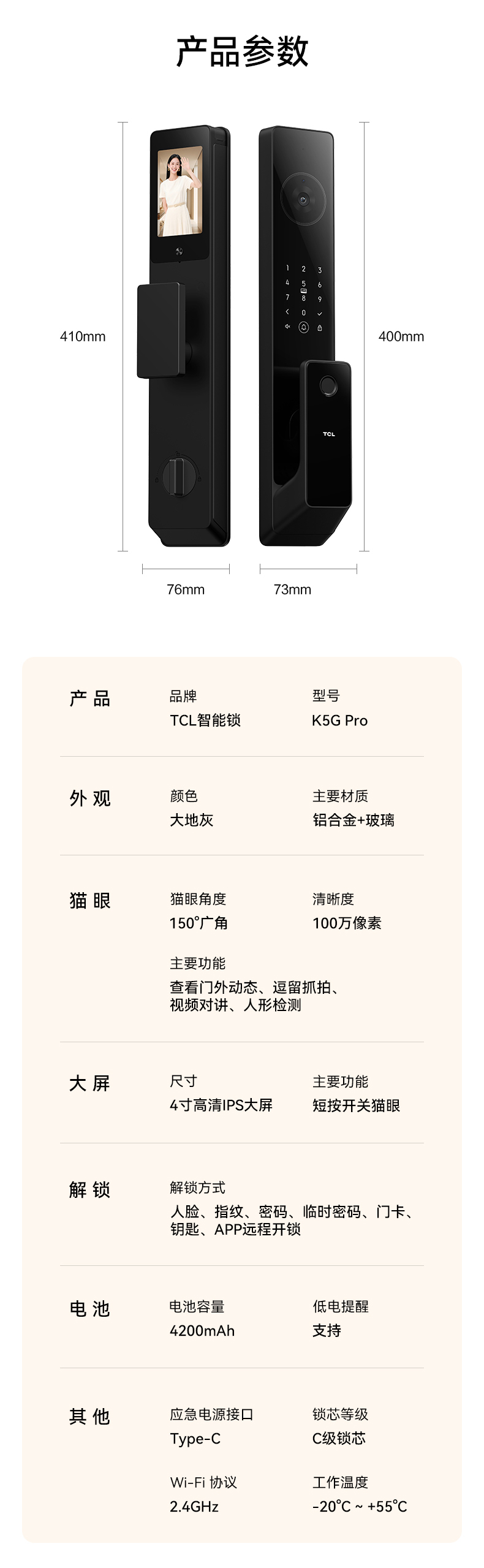 TCL人脸识别猫眼锁指纹锁智能锁智能门锁密码锁家用电子锁 K5G Pro