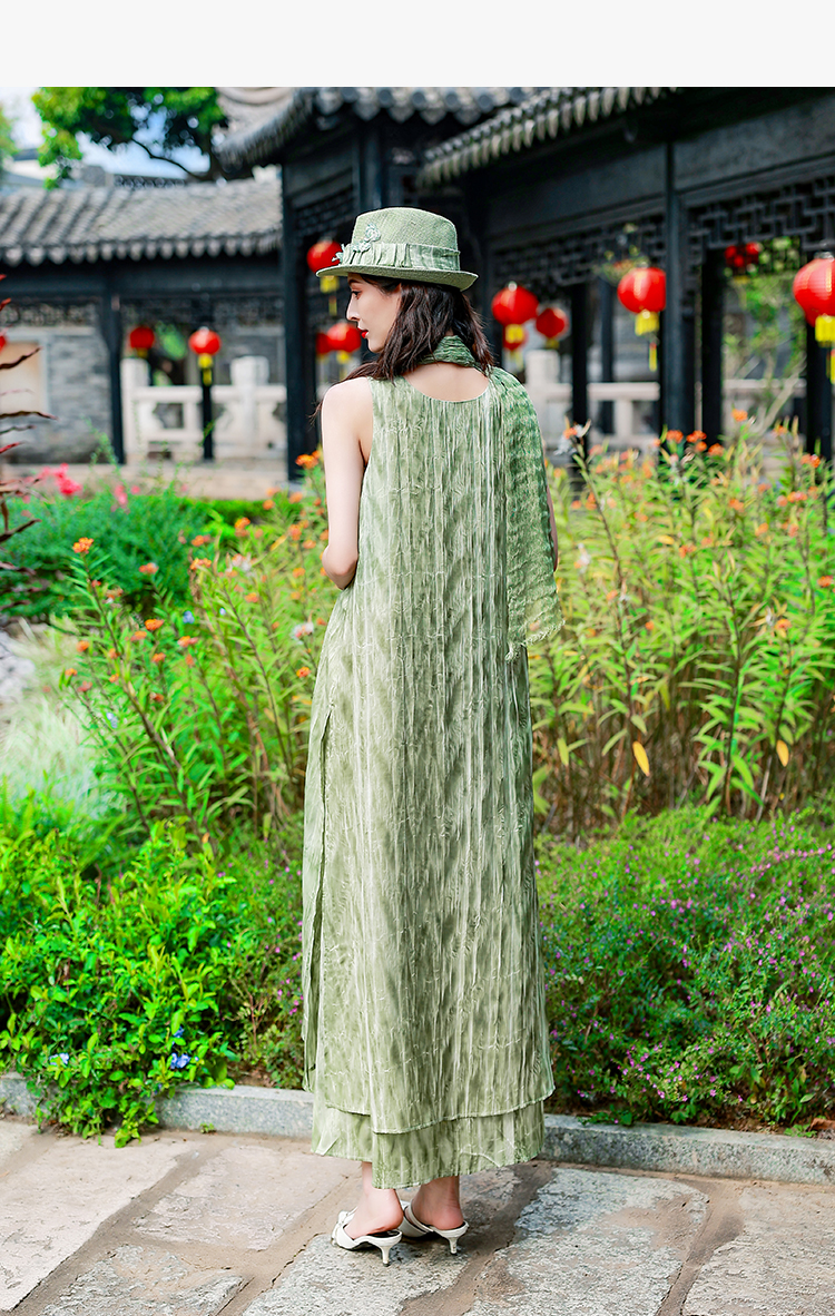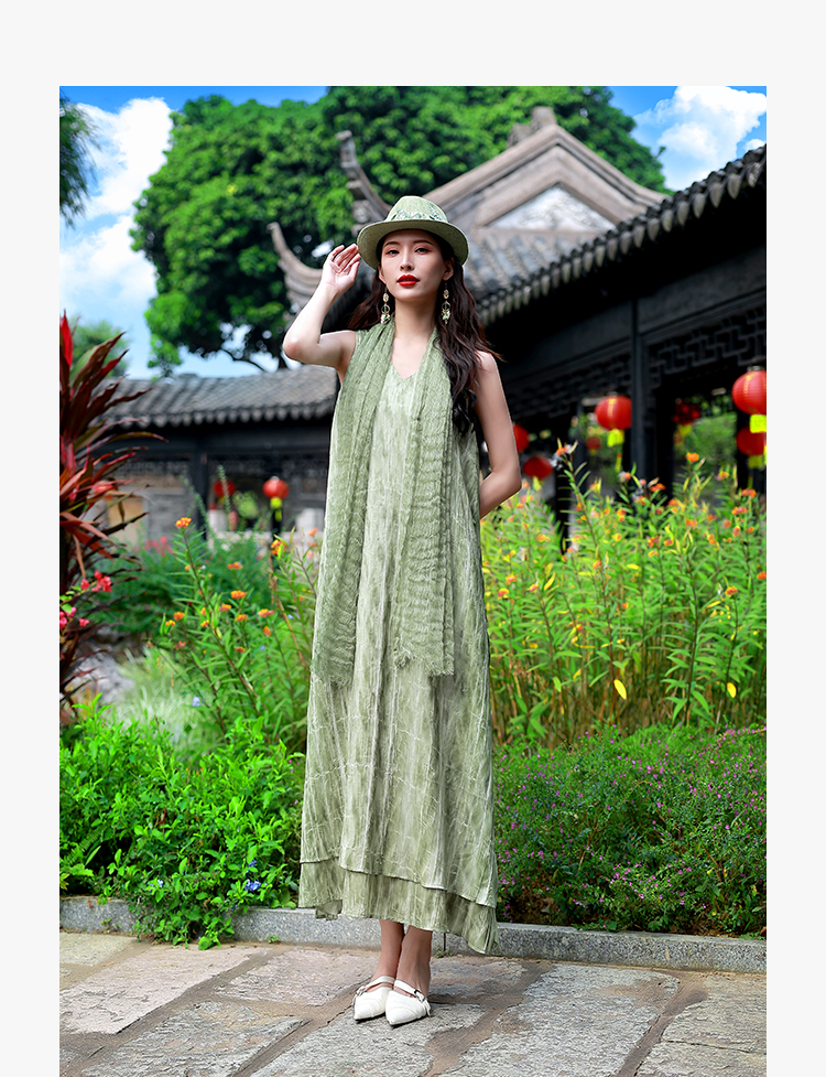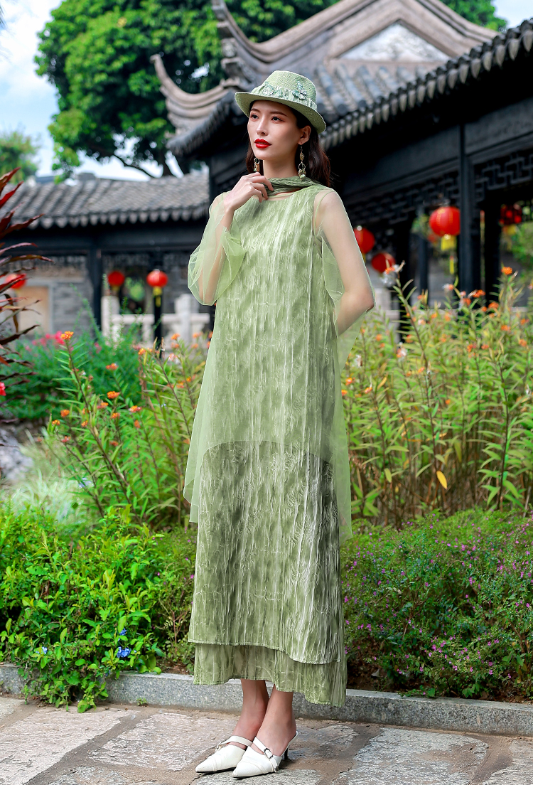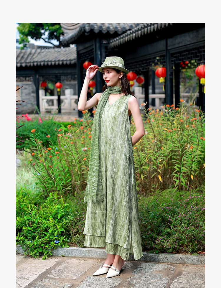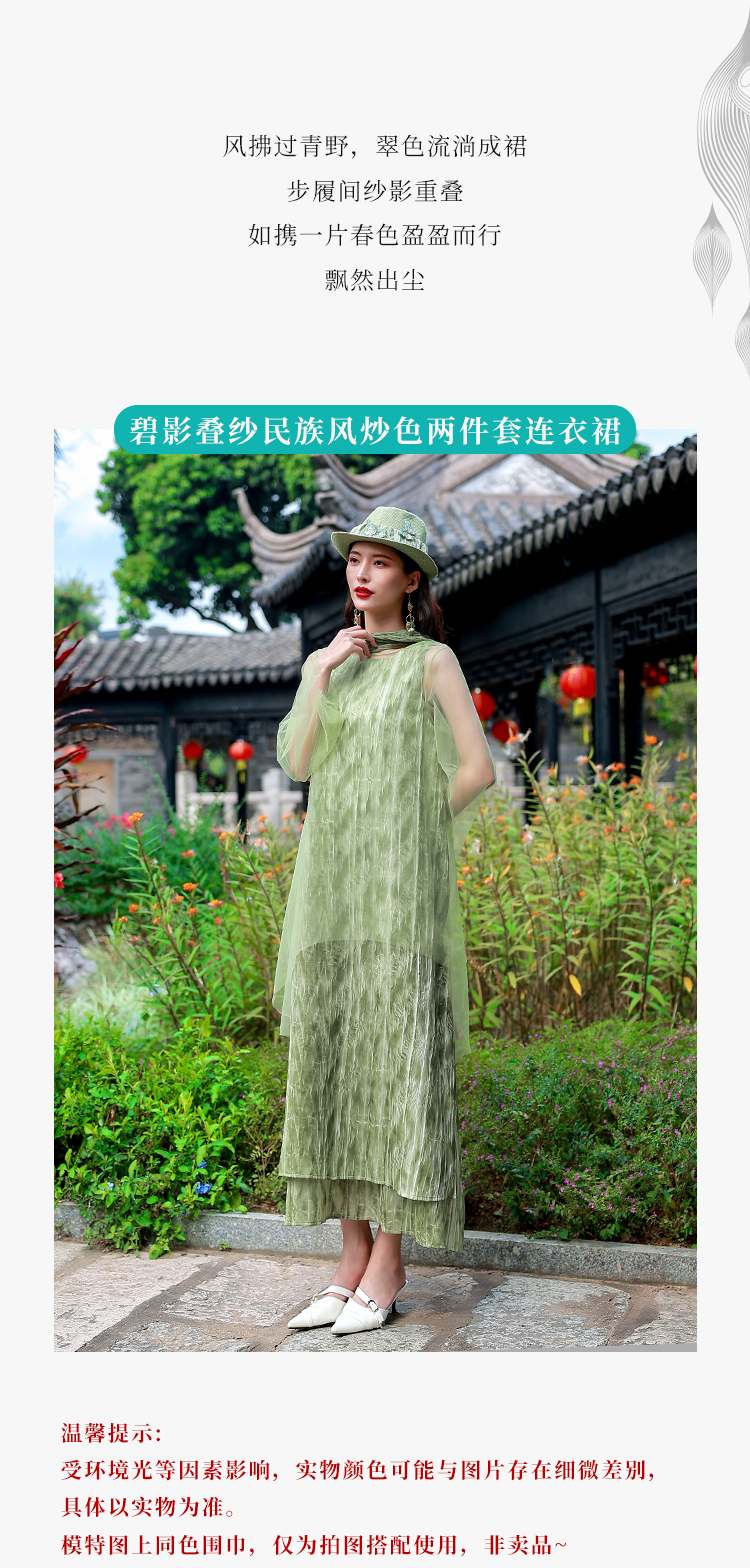 【春季新品】碧影叠纱民族风炒色两件套连衣裙 | 预售15天